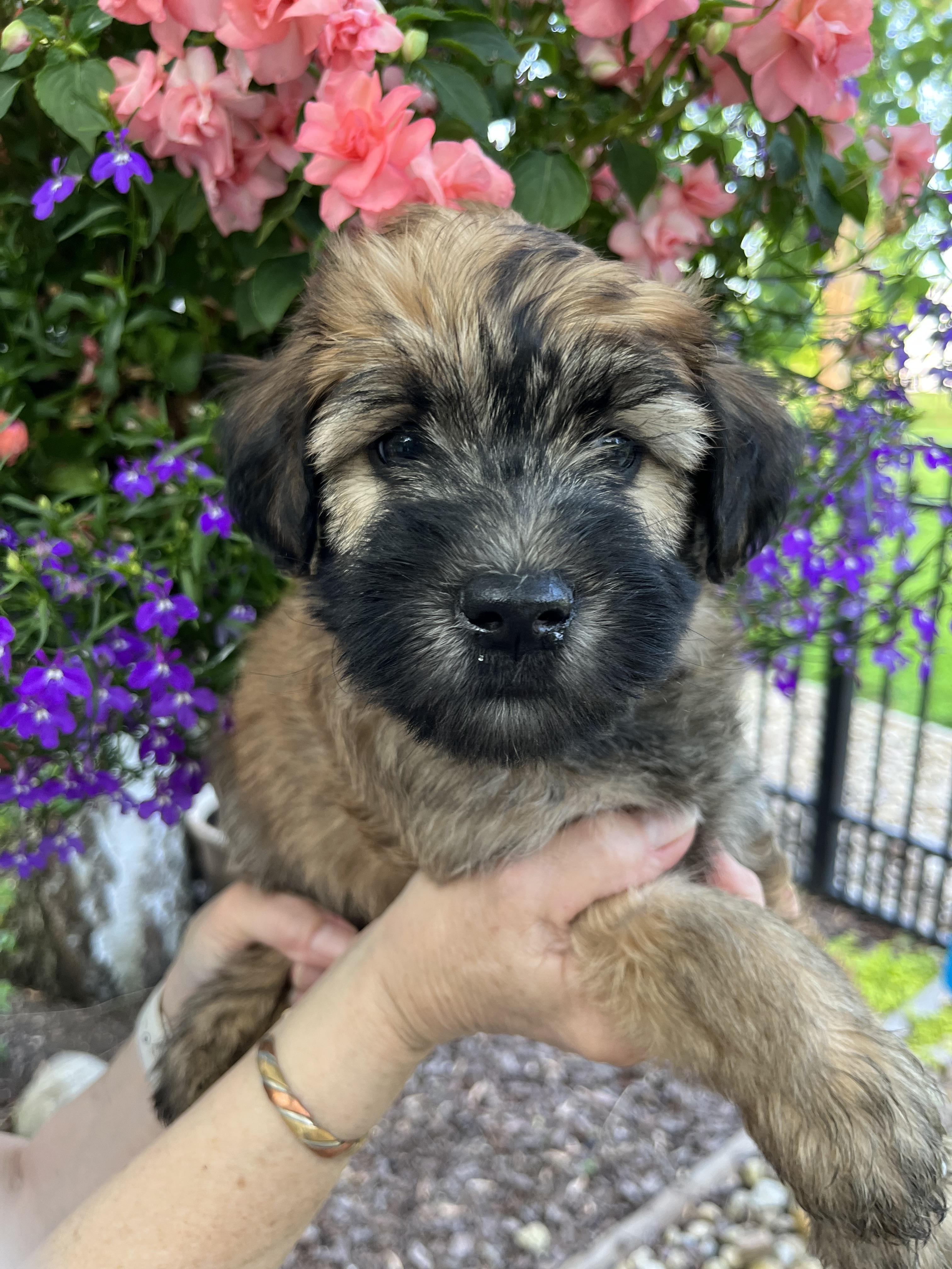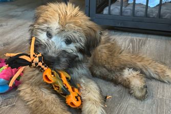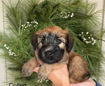 “I keep the price as reasonable as possible with Embark and OFA tested parents. The Golden Doodles are $2,500 and The AKC Wheatens are 2,300. The Whoodles are 2,000. Genetic testing on individual pups can be done at buyers expense. A waitlist deposit for a litter is $200 and nonrefundable. This holds your spot for a particular litter. A $400 deposit is collected after the puppies are around 2 weeks old. It also hold your spot for picking your puppy which is done at 6-7 weeks. Picks are done by order on the waitlist. All deposits are applied to the price of a puppy. The deposit can be transferred to another litter if a particular puppy isn’t available.”