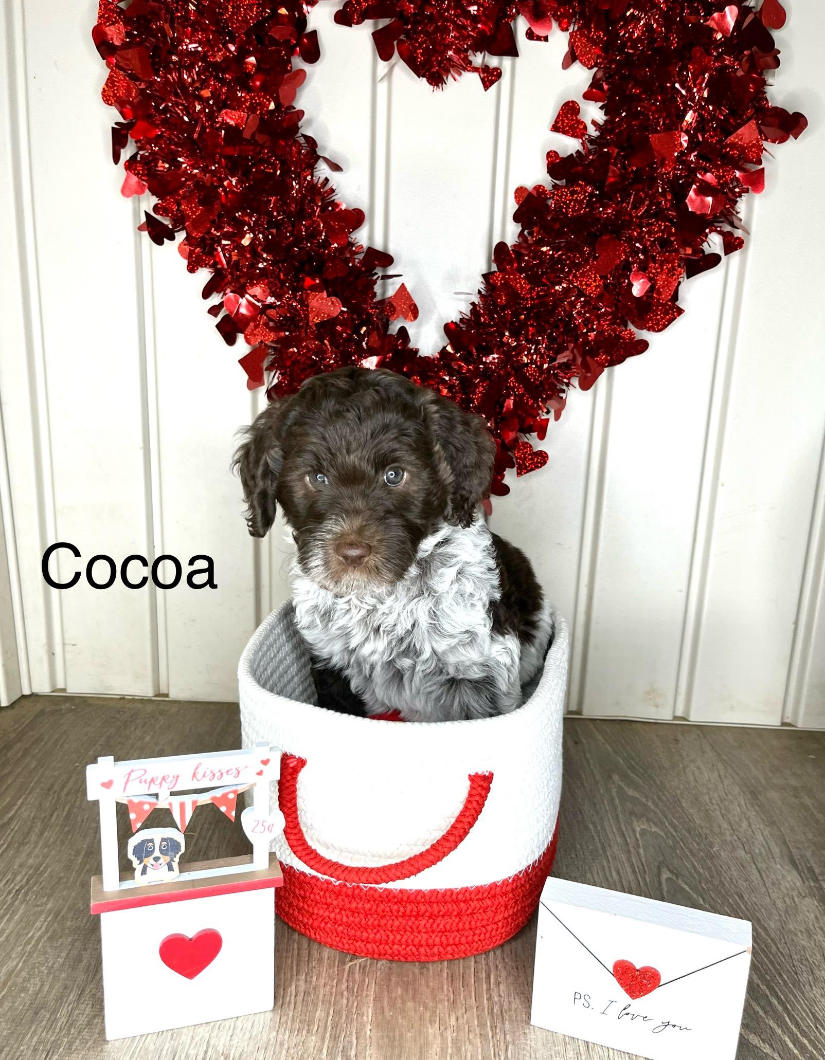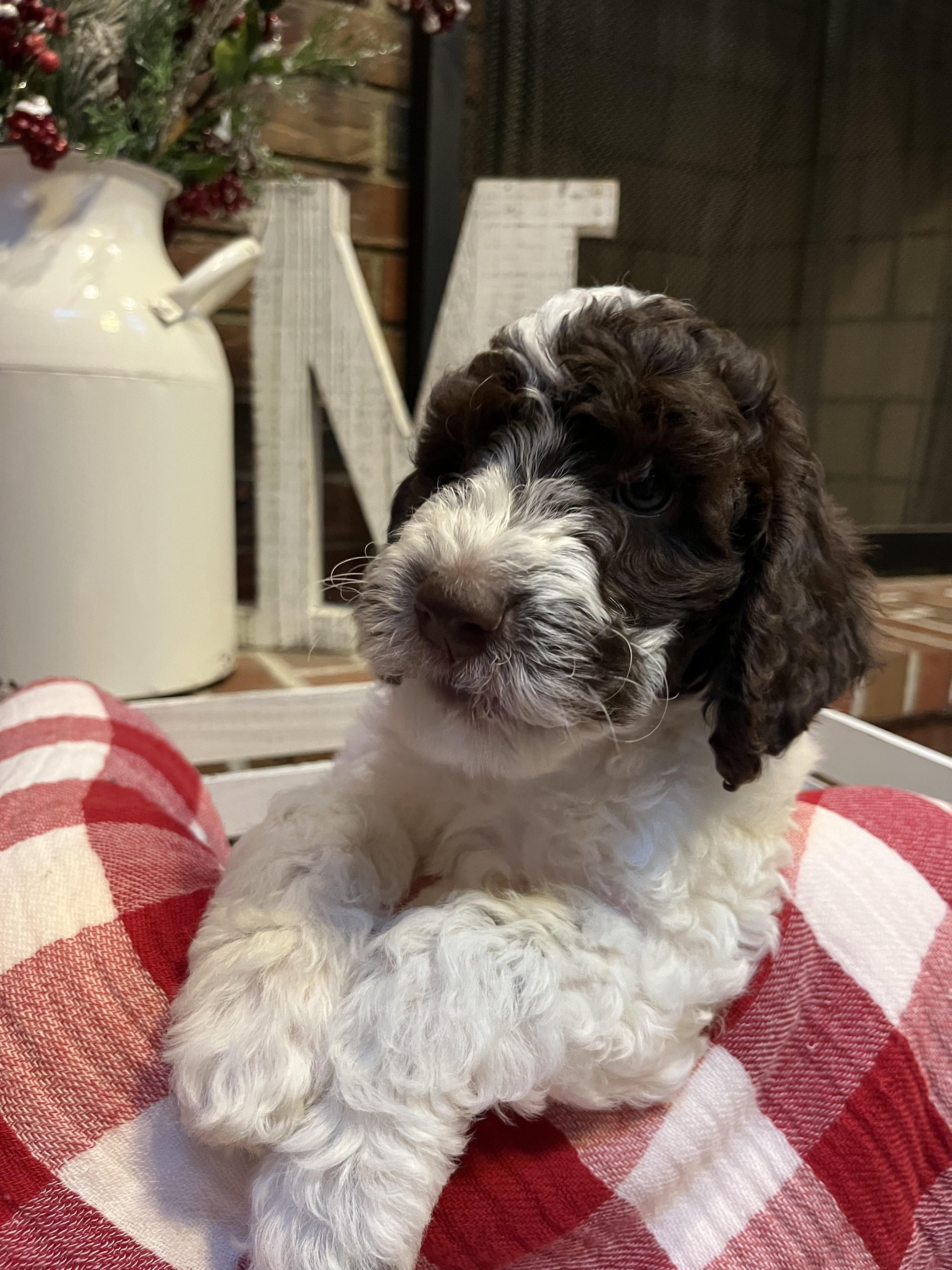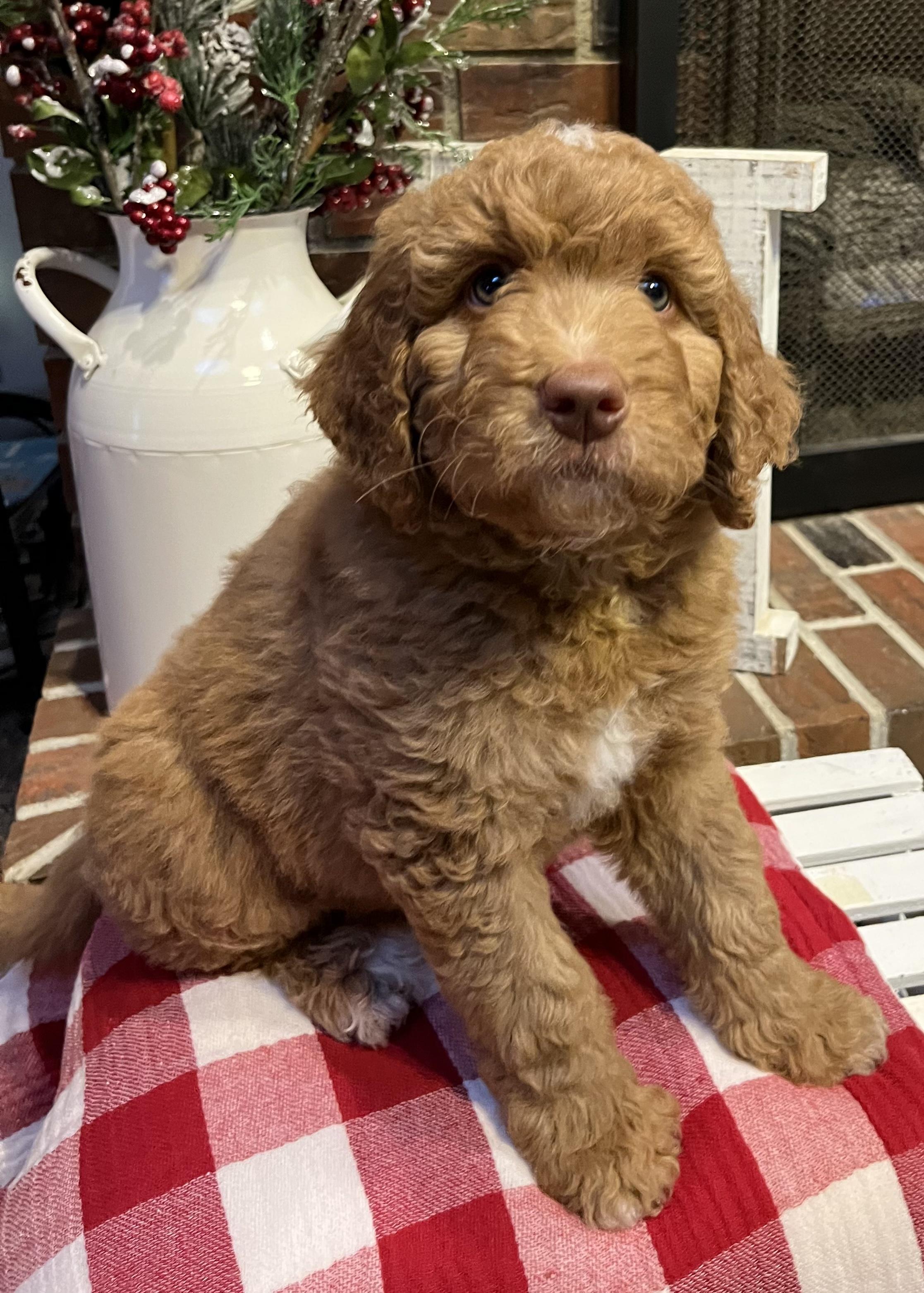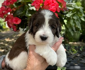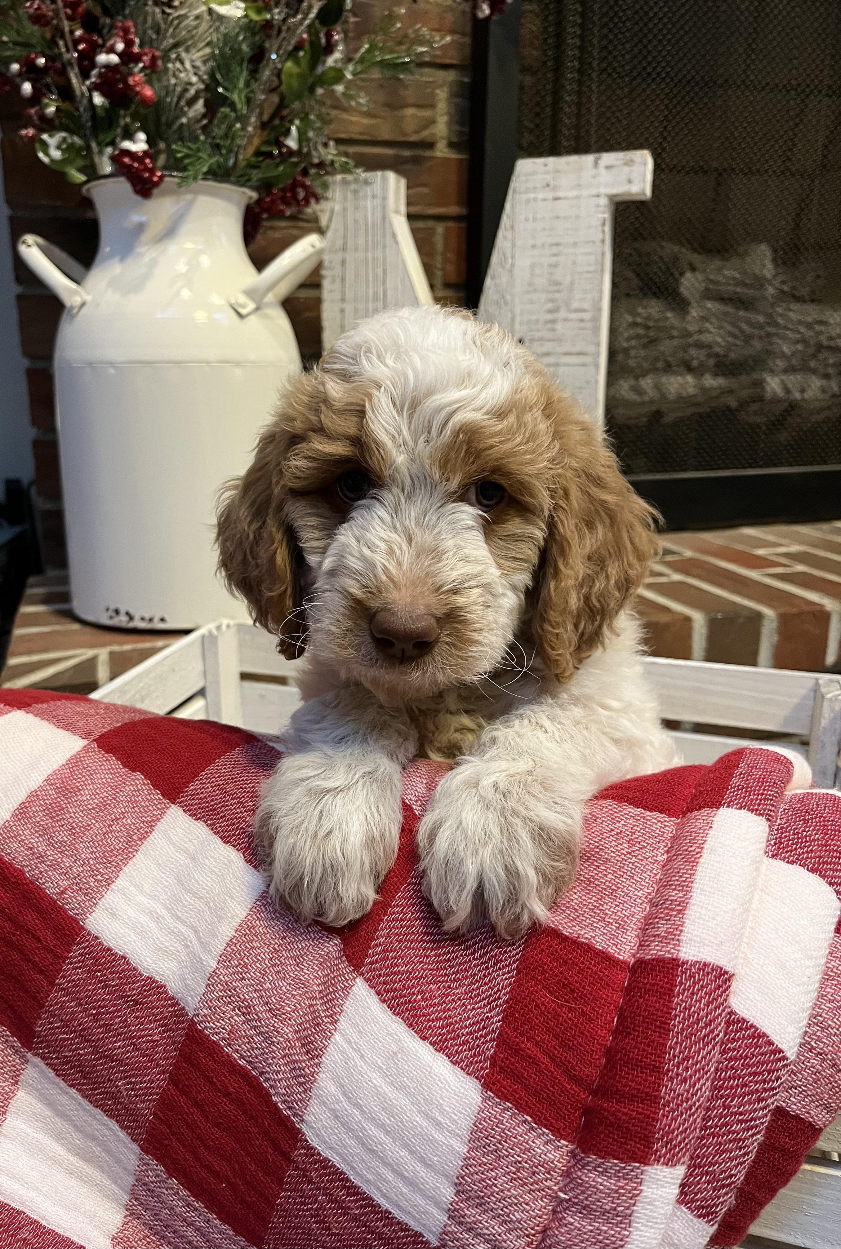 Our puppies will be free from any genetic de-habilitating disease. They are well socialized with children and all ages of adults, plus other dogs. They have low to no shedding coats like poodles. They have been handled from day one with ENS, Puppy Culture and Badass Breeders protocol. Training for no biting/ sitting and potty training is started. Breeder support is always available 24/7.