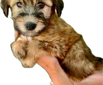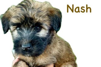Our Assorted Doodle Crosses puppies include black and white and black. Soft Coated Wheaten Terrier puppies are wheaten. Goldendoodle puppies include cream, apricot, red, chocolate, black, merle, and parti. Colors will vary depending on the parent dogs.