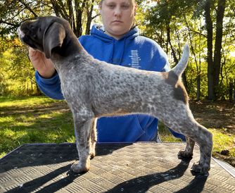 I'm Tina H., the breeder behind Valor Hill Kennels located in Stacy, MN. Our dogs are bred for health & temperament with a focus on natural hunting abilities. We breed to improve our dogs and meet the breed standard. Our dogs go through rigorous training & evaluation. They compete in multiple venues including hunt tests, obedience, rally, agility & dock diving.