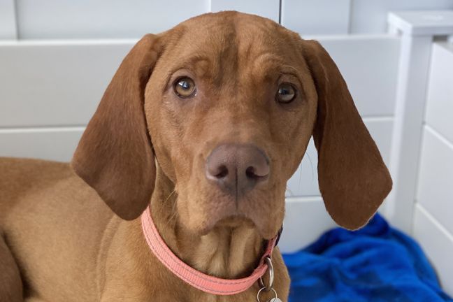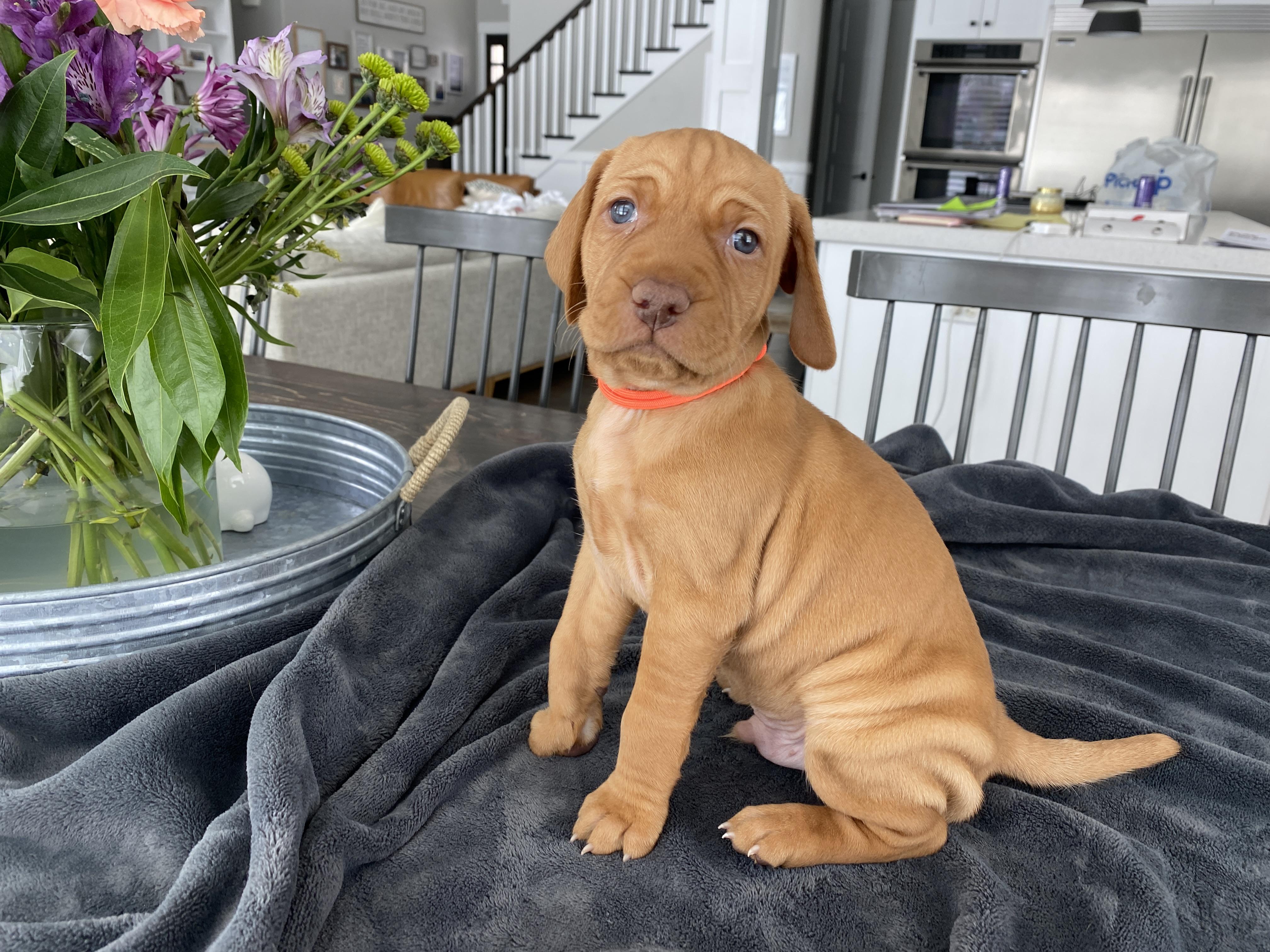 Pete is a male Vizsla. Carefully selected as a great representative of his breed, Janessa decided to make him part of their program. Janessa has passed Good Dog’s screening process, which involved a review of their breeding practices, environment, and the mental and physical health of their dogs.