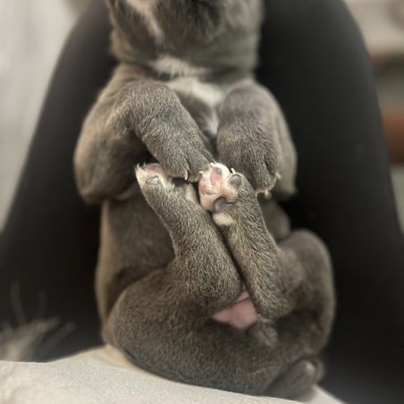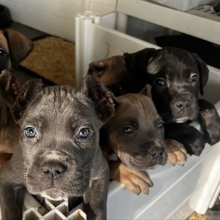 Our puppies include gray and fawn, black, black brindle, fawn, gray, and gray brindle. Colors will vary depending on the parent dogs.