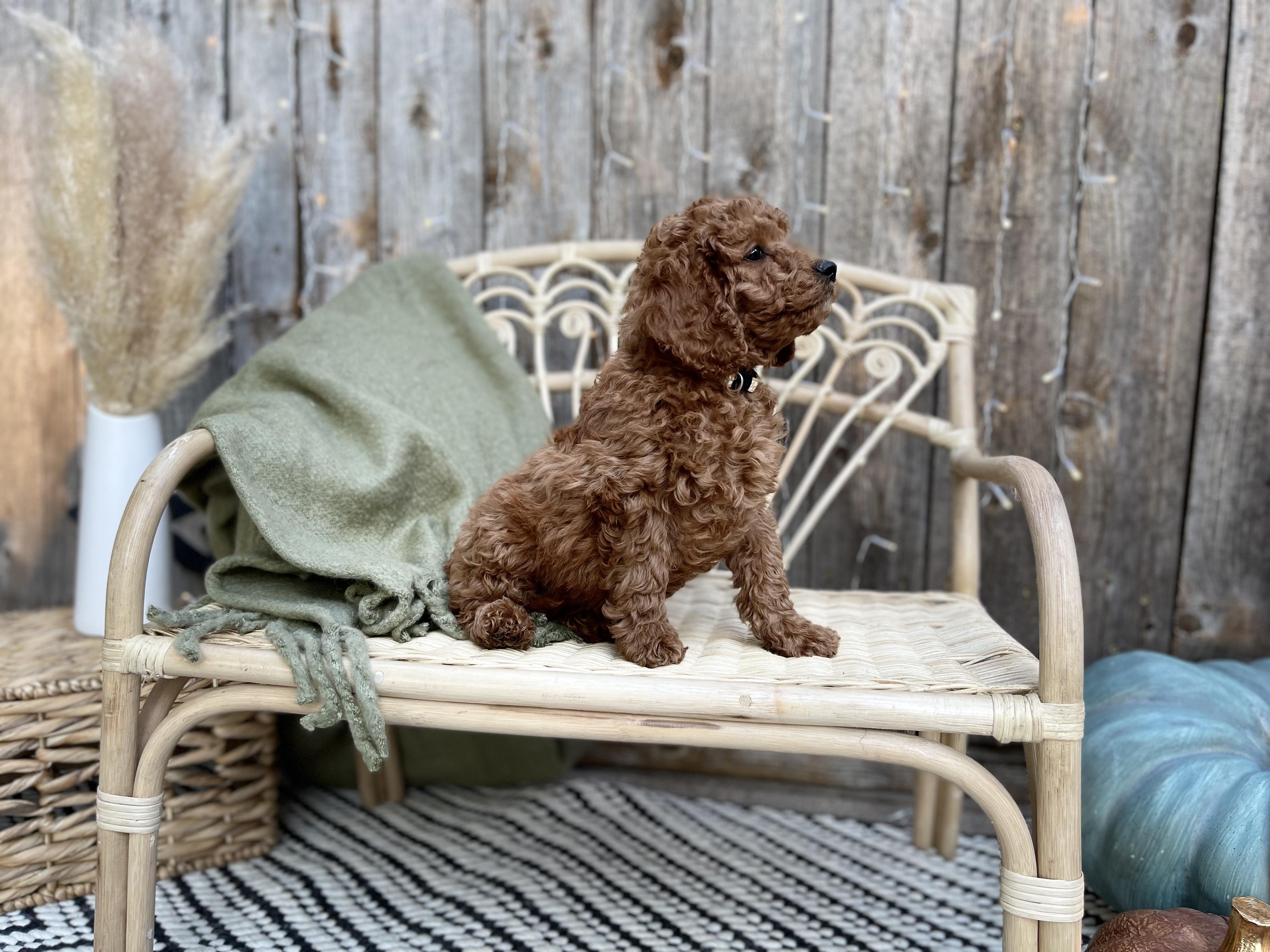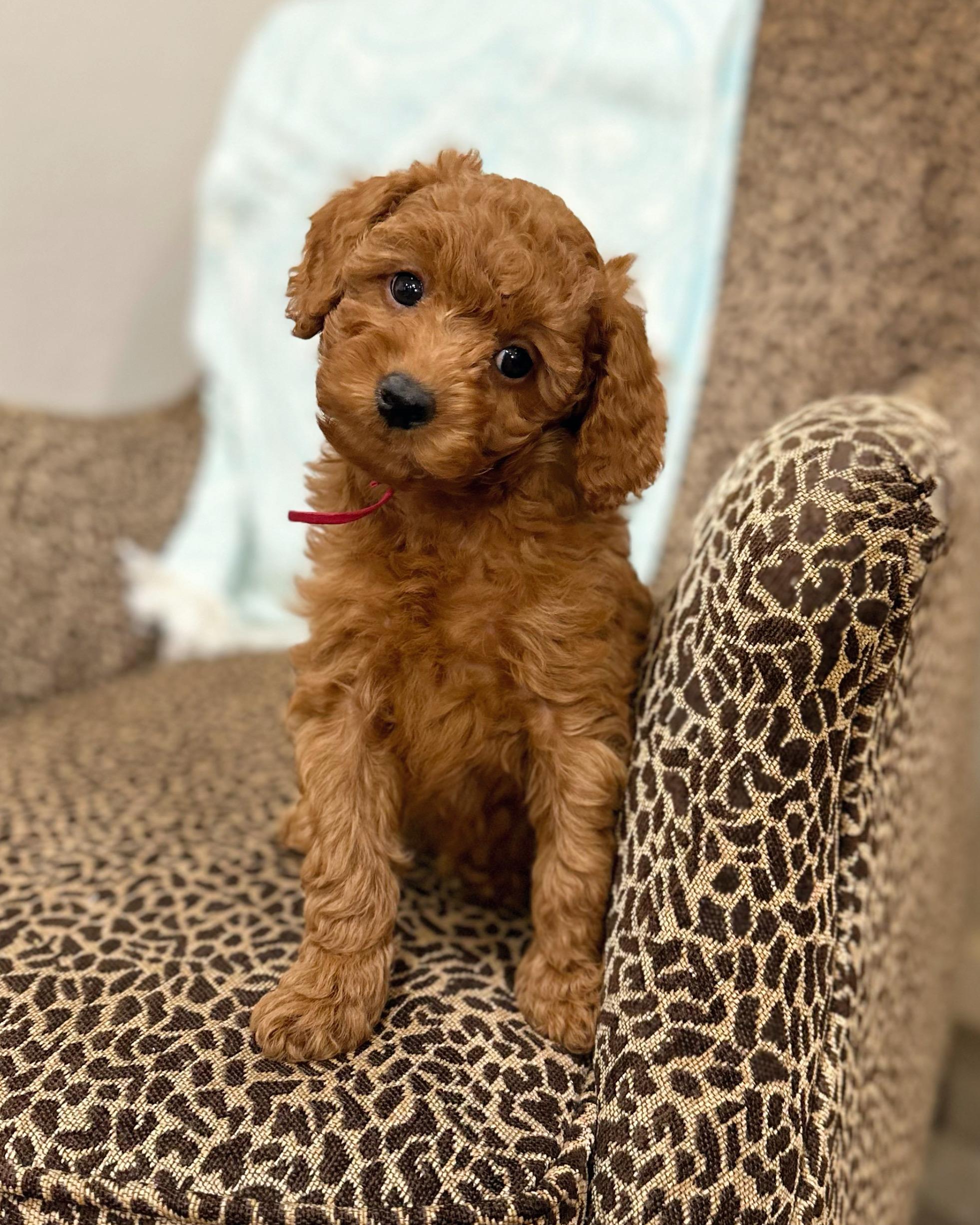 Our Poodle puppies include apricot, cream, red, white, parti, and phantom. Cavapoo puppies include tri-color, black and tan, red, and apricot. Colors will vary depending on the parent dogs.