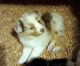 Our puppies include black, red merle, blue merle, and red. Colors will vary depending on the parent dogs.