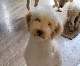 Smokey is a male Labradoodle. Carefully selected as a great representative of his breed, Linda decided to make him part of their program. Linda has passed Good Dog’s screening process, which involved a review of their breeding practices, environment, and the mental and physical health of their dogs.
