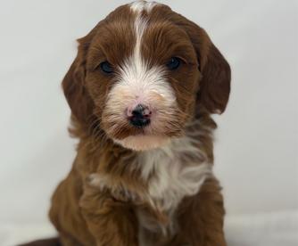 Our Bernedoodle puppies include tri-color, phantom, blue merle, and merle. Goldendoodle puppies include cream, apricot, red, chocolate, black, and phantom. Colors will vary depending on the parent dogs.
