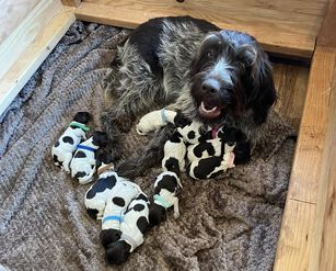 Dolly is a female Wirehaired Pointing Griffon. Carefully selected as a great representative of her breed, Brent/Kandi decided to make her part of their program. Brent/Kandi has passed Good Dog’s screening process, which involved a review of their breeding practices, environment, and the mental and physical health of their dogs.