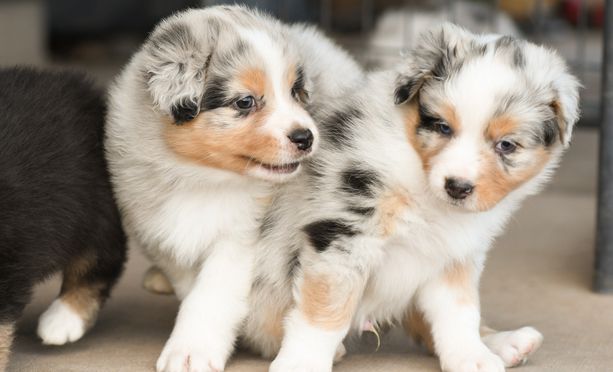 Our puppies include red merle, blue merle, black tri-color, and red tri-color. Colors will vary depending on the parent dogs.