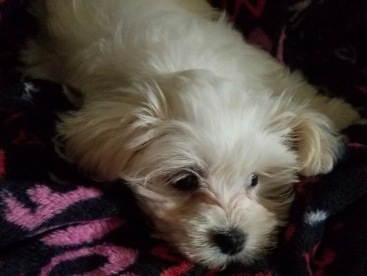 Molly is a female Maltese. Carefully selected as a great representative of her breed, Jessica decided to make her part of their program. Jessica has passed Good Dog’s screening process, which involved a review of their breeding practices, environment, and the mental and physical health of their dogs.
