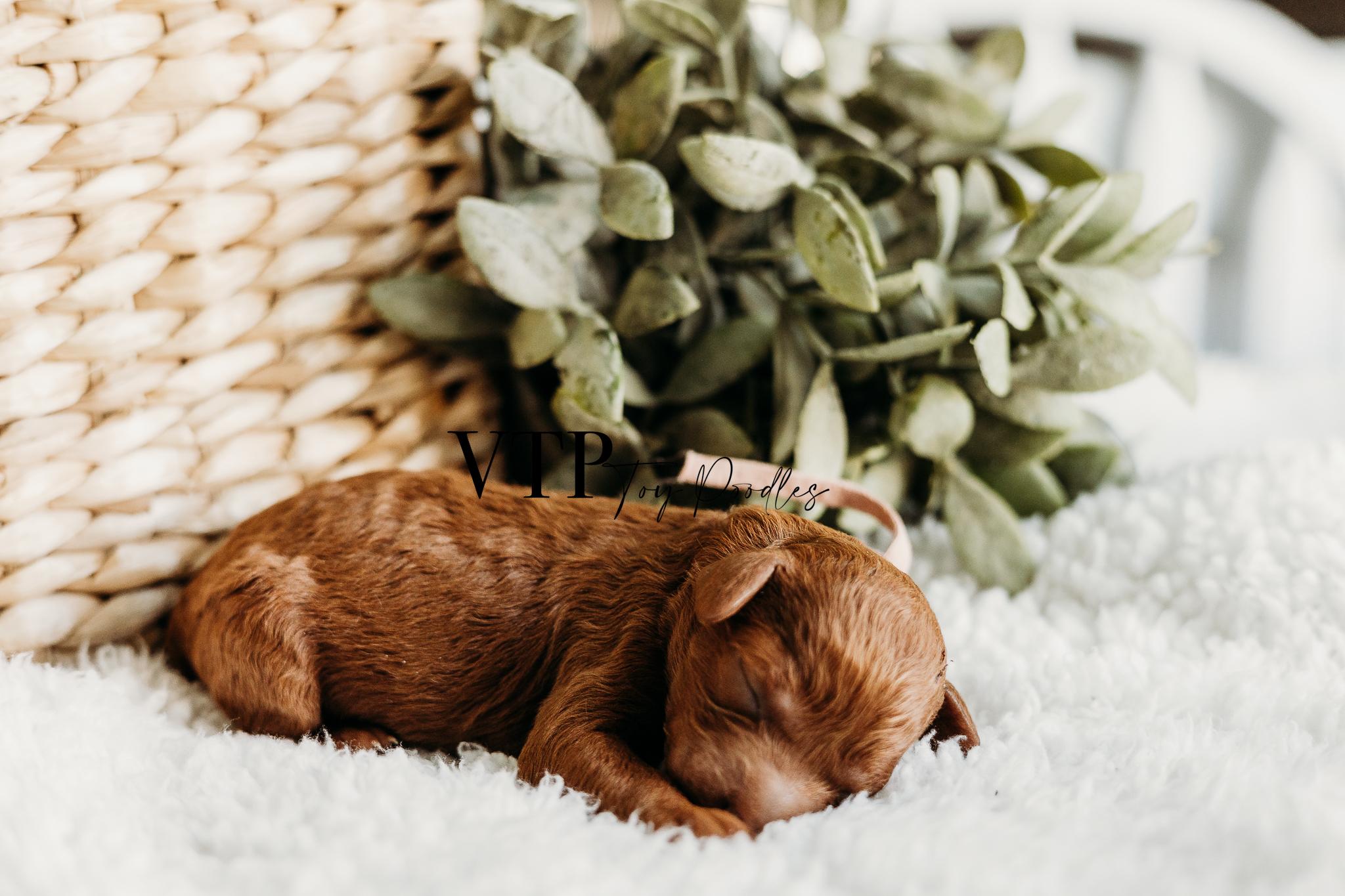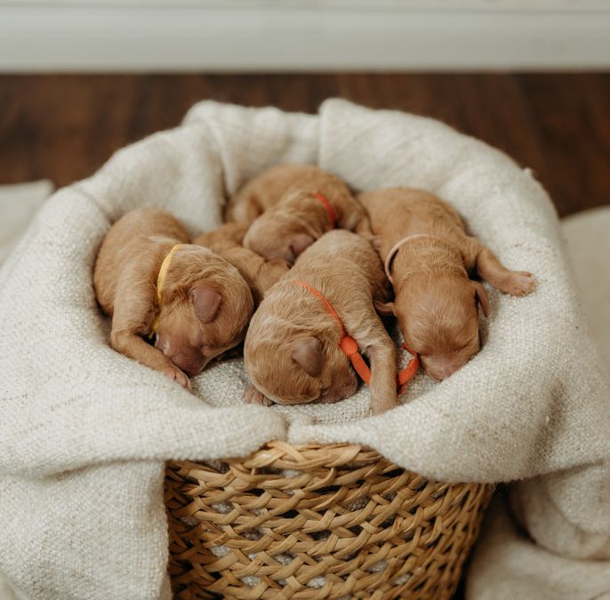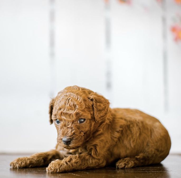 Our puppies include apricot and red. Colors will vary depending on the parent dogs.