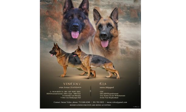 I'm Imran V., the breeder behind Vehra German Shepherds located in Kingwood, TX. We do our best to socialize and acclimate each litter so we’re able to offer all-around healthy and well-mannered puppies! We love helping people find the perfect new addition to their families and we’re proud of our reputation as reliable breeders.
