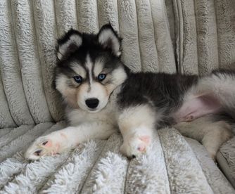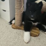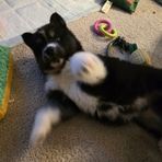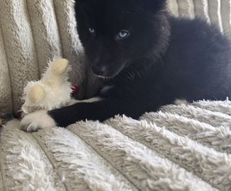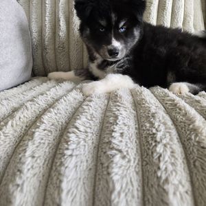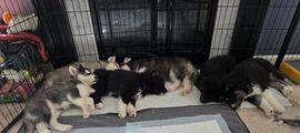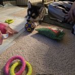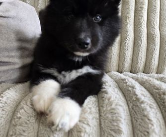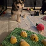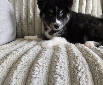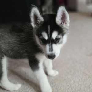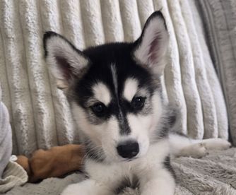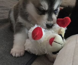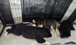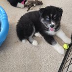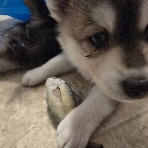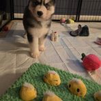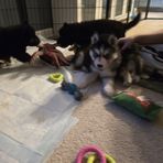 I'm Stephanie W., the breeder behind Velaris Huskies located in Richlands, NC. We have 3 Siberians that we breed. Both of our females are solid in color. Our male is an agouti.