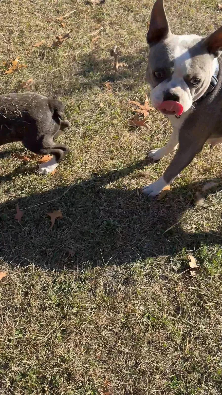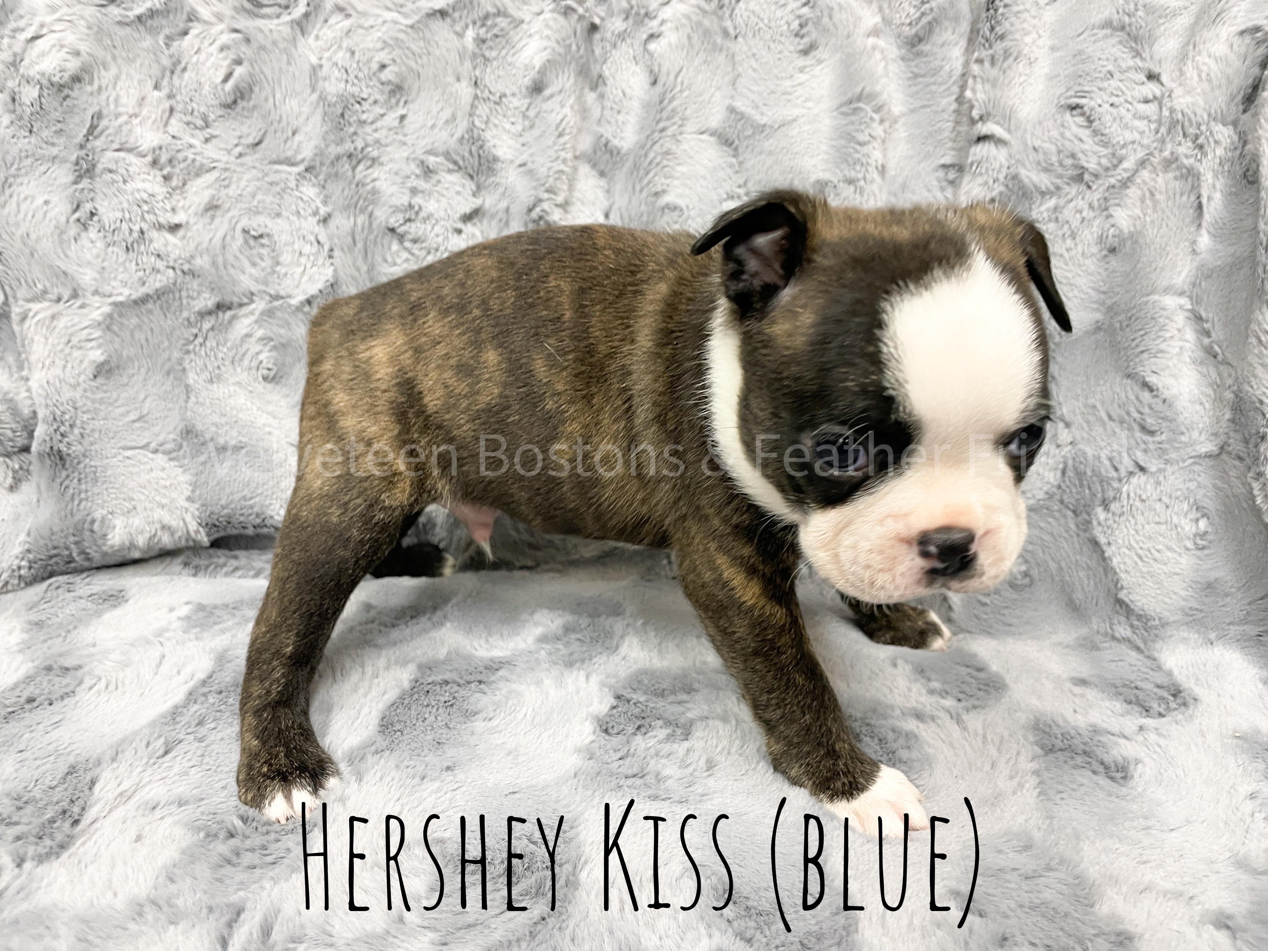 Holley is a blue brindle & white Boston Terrier.