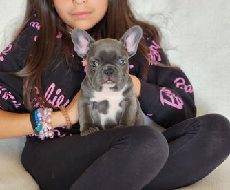 French Bulldog puppies include brindle, blue, and blue fawn. Colors will vary depending on the parent dogs.