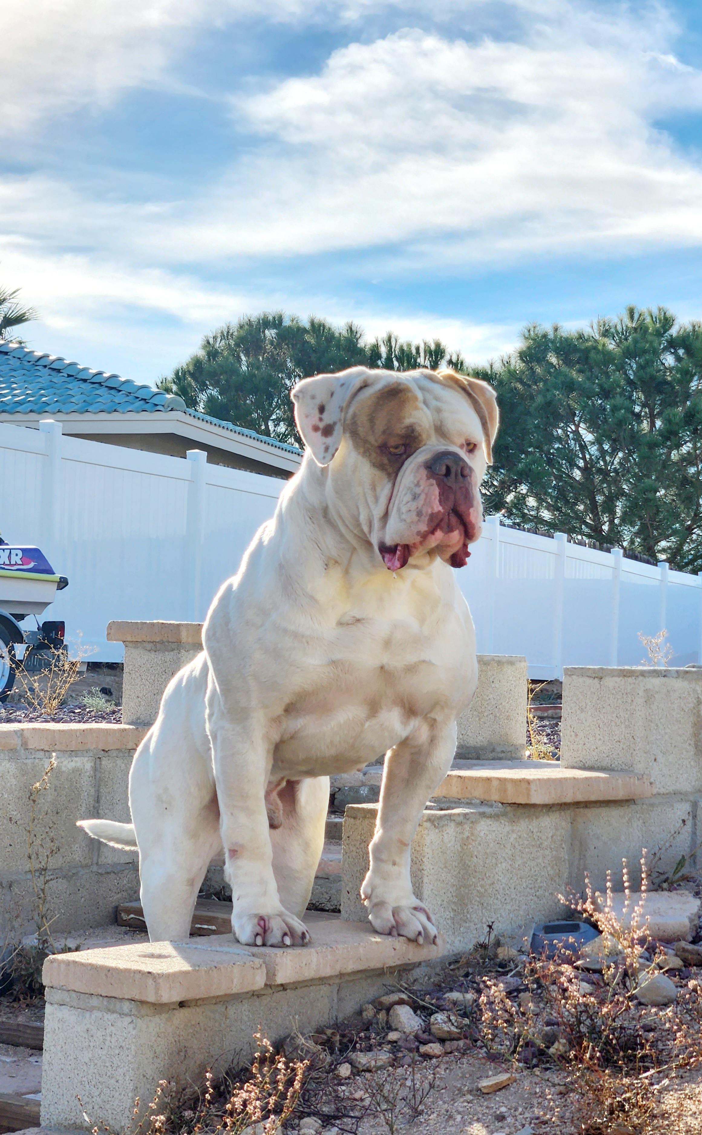 Peso is a male American Bulldog. Carefully selected as a great representative of his breed, Dennis decided to make him part of their program. Dennis has passed Good Dog’s screening process, which involved a review of their breeding practices, environment, and the mental and physical health of their dogs.