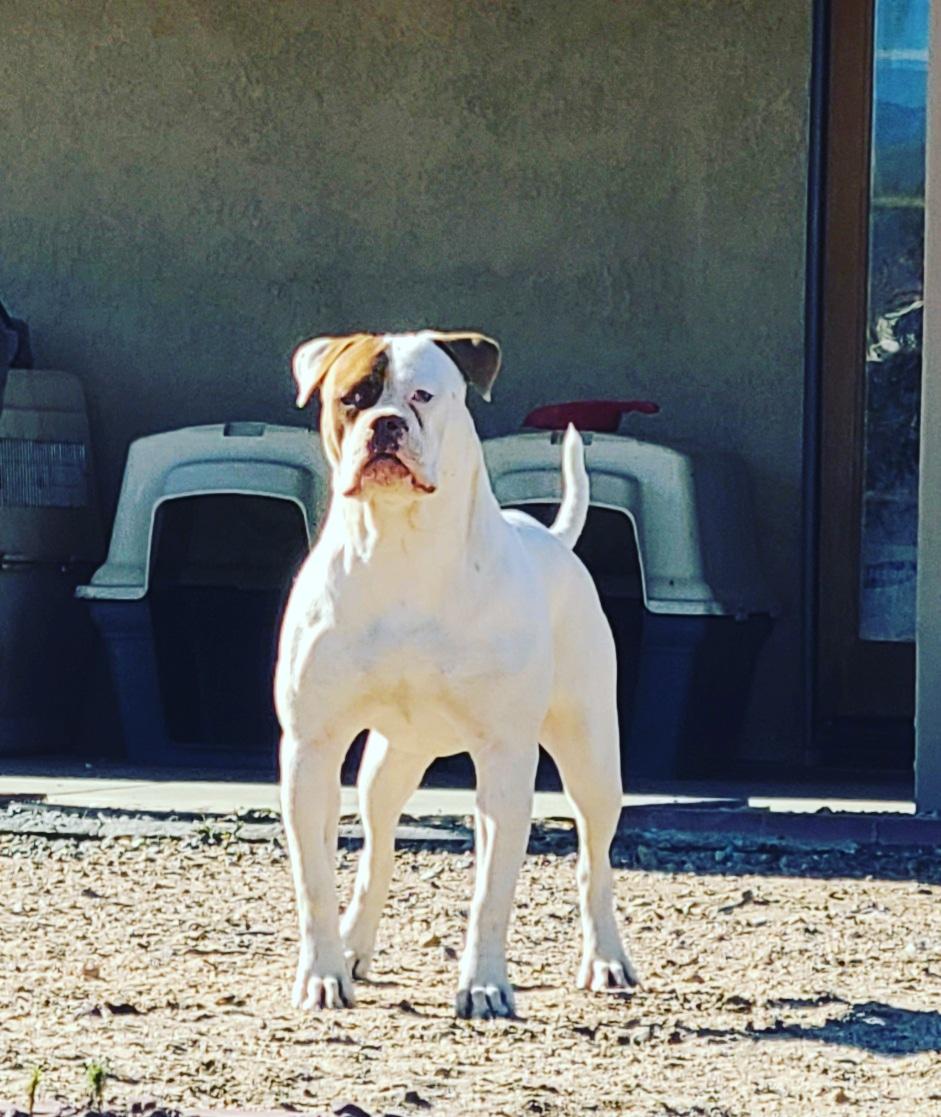 Athena is a female American Bulldog. Carefully selected as a great representative of her breed, Dennis decided to make her part of their program. Dennis has passed Good Dog’s screening process, which involved a review of their breeding practices, environment, and the mental and physical health of their dogs.