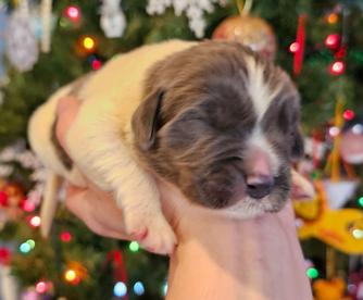 Our puppies include beige, white and gray, white and black, white and brown, brown, and gray. Colors will vary depending on the parent dogs.
