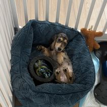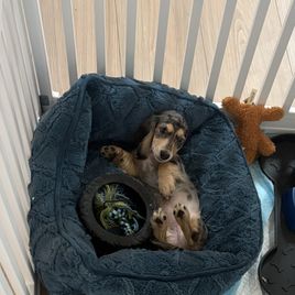 Honeyboy is a male Dachshund. Carefully selected as a great representative of his breed, Kailee decided to make him part of their program. Kailee has passed Good Dog’s screening process, which involved a review of their breeding practices, environment, and the mental and physical health of their dogs.