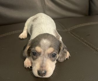 Our Dachshund puppies include cream, fawn (isabella) and cream, chocolate and tan, chocolate and cream, blue and cream, black and cream, and dapple. Colors will vary depending on the parent dogs.