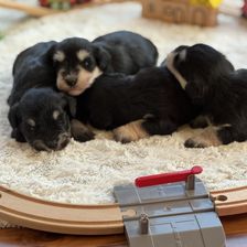 My husband, a long time dog lover, developed a dog allergy later in life. We were all sad, thinking we couldn’t have a dog anymore. We found though that he could tolerate certain low shedding, hypoallergenic breeds. That led us to Miniature Schnauzers and F1b Goldendoodles. Our dogs are Embark tested to be clear of genetic illnesses but also to ensure their coats are low shedding and hypoallergenic.