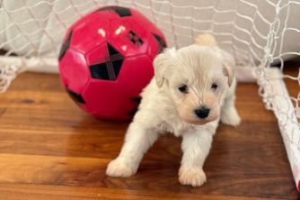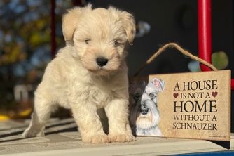Our puppies include wheaten, white, and black and silver. Colors will vary depending on the parent dogs.