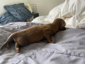 I'm Karina V., the breeder behind Vestergaard Dachshunds located in Jacksonville Beach, FL. All of our dogs are bred, raised, and loved indoors to produce happy, healthy pets for those seeking the best family companion! Our dogs stole our hearts right from the start and we found ourselves wanting to get more involved. Breeding was a natural next step and we haven’t looked back since!