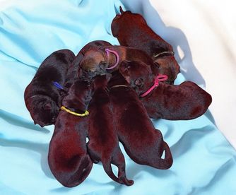 Our puppies include sable, black, black and tan, black and red, and bi-color. Colors will vary depending on the parent dogs.