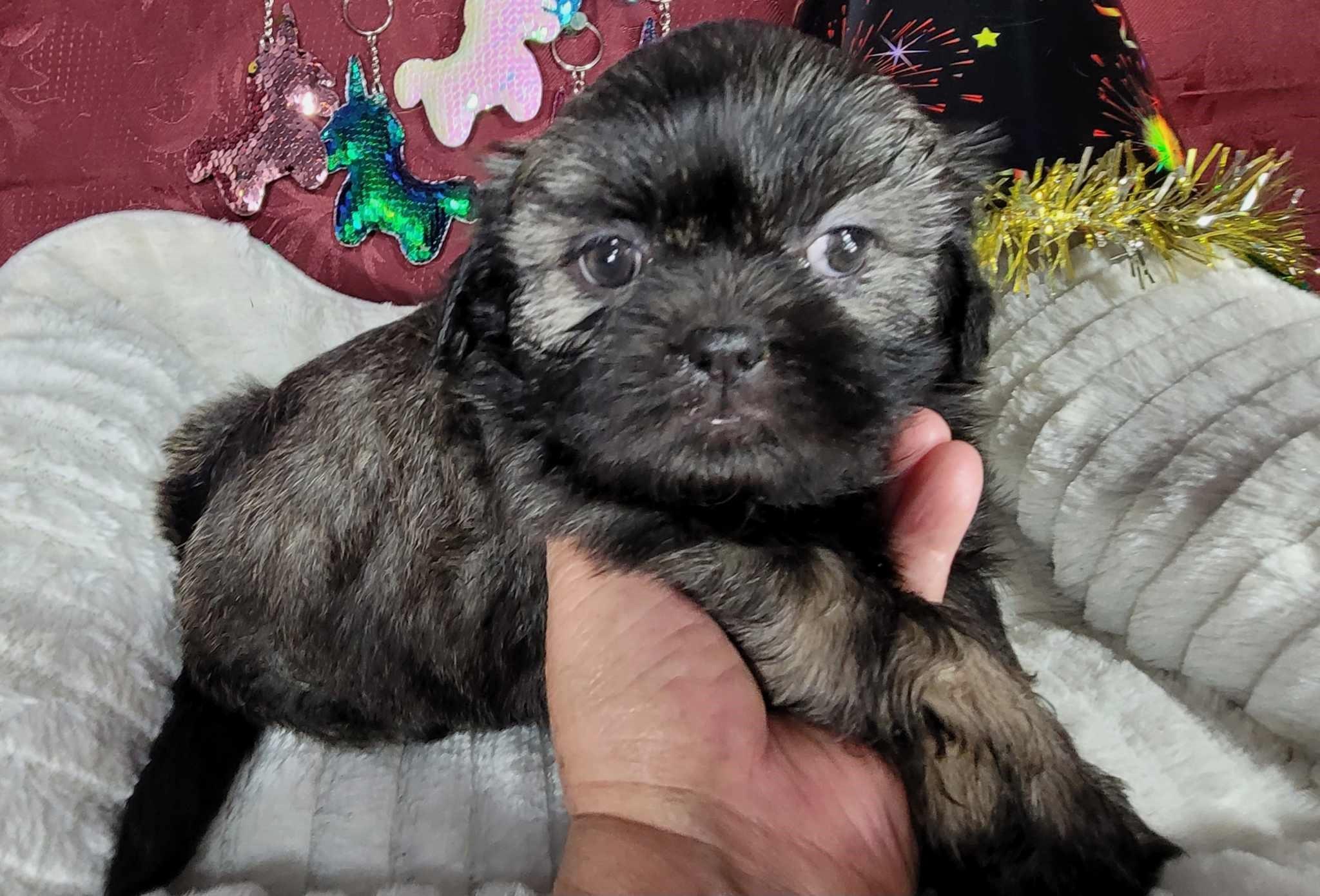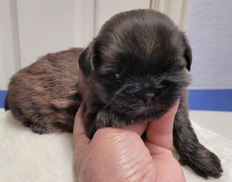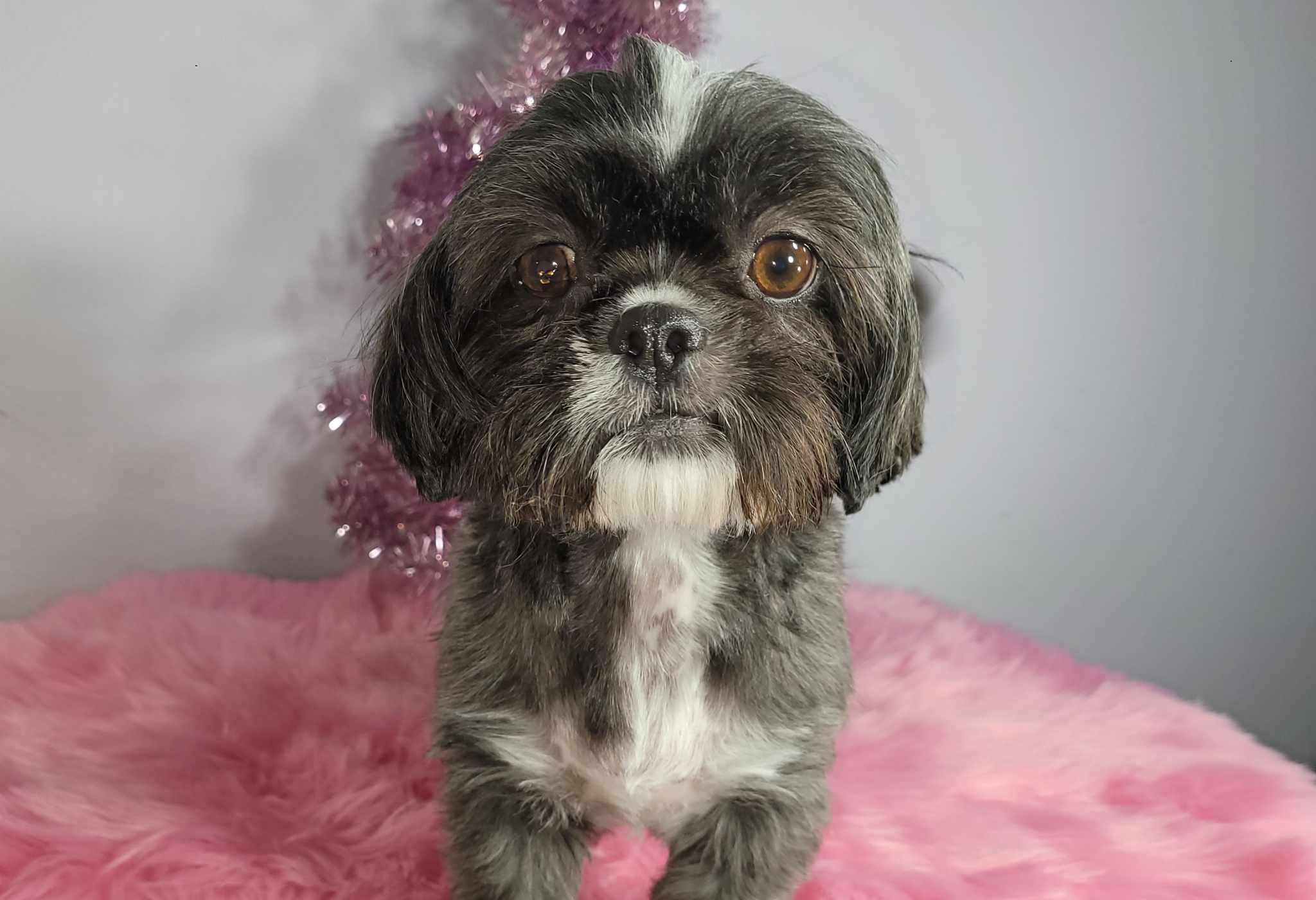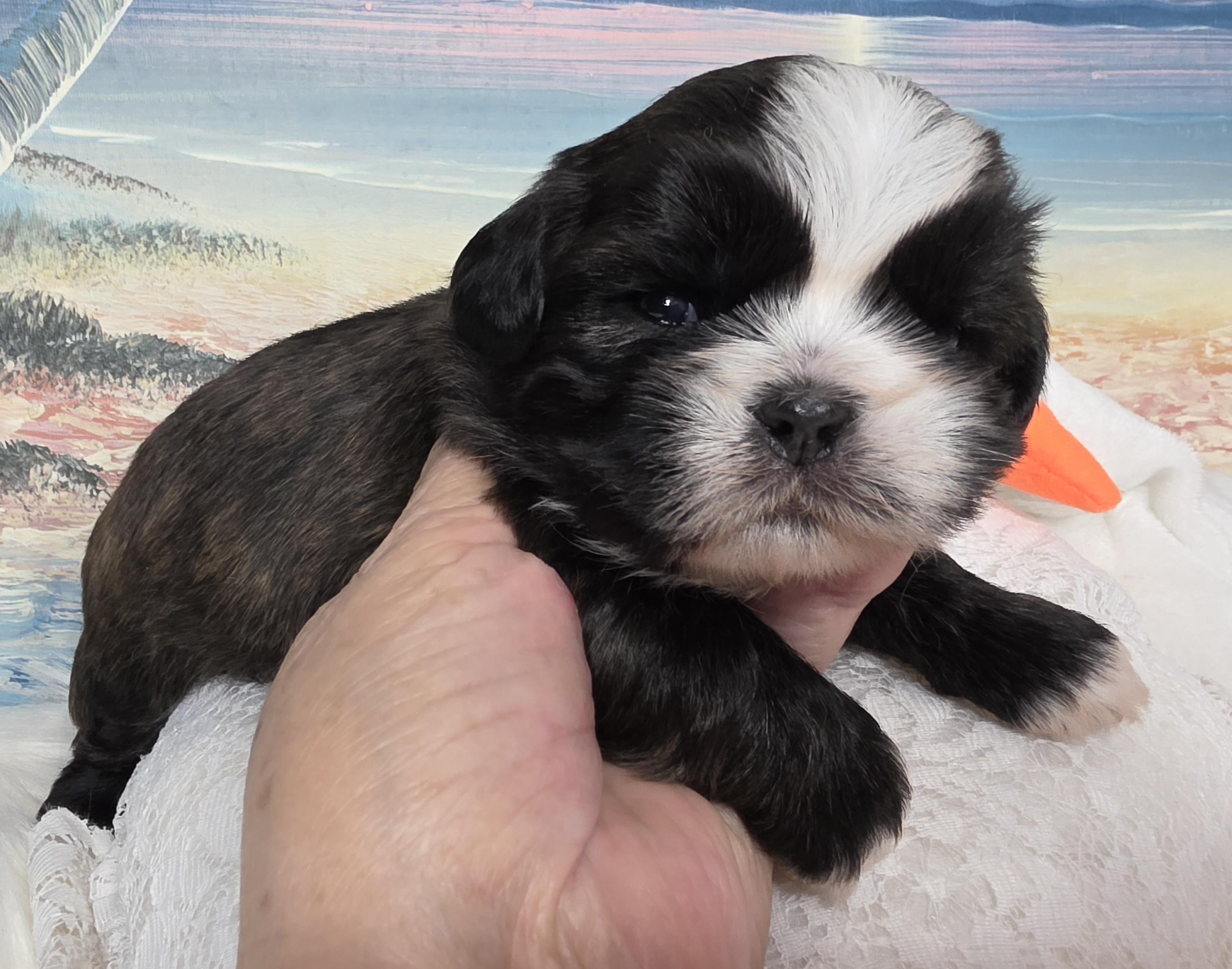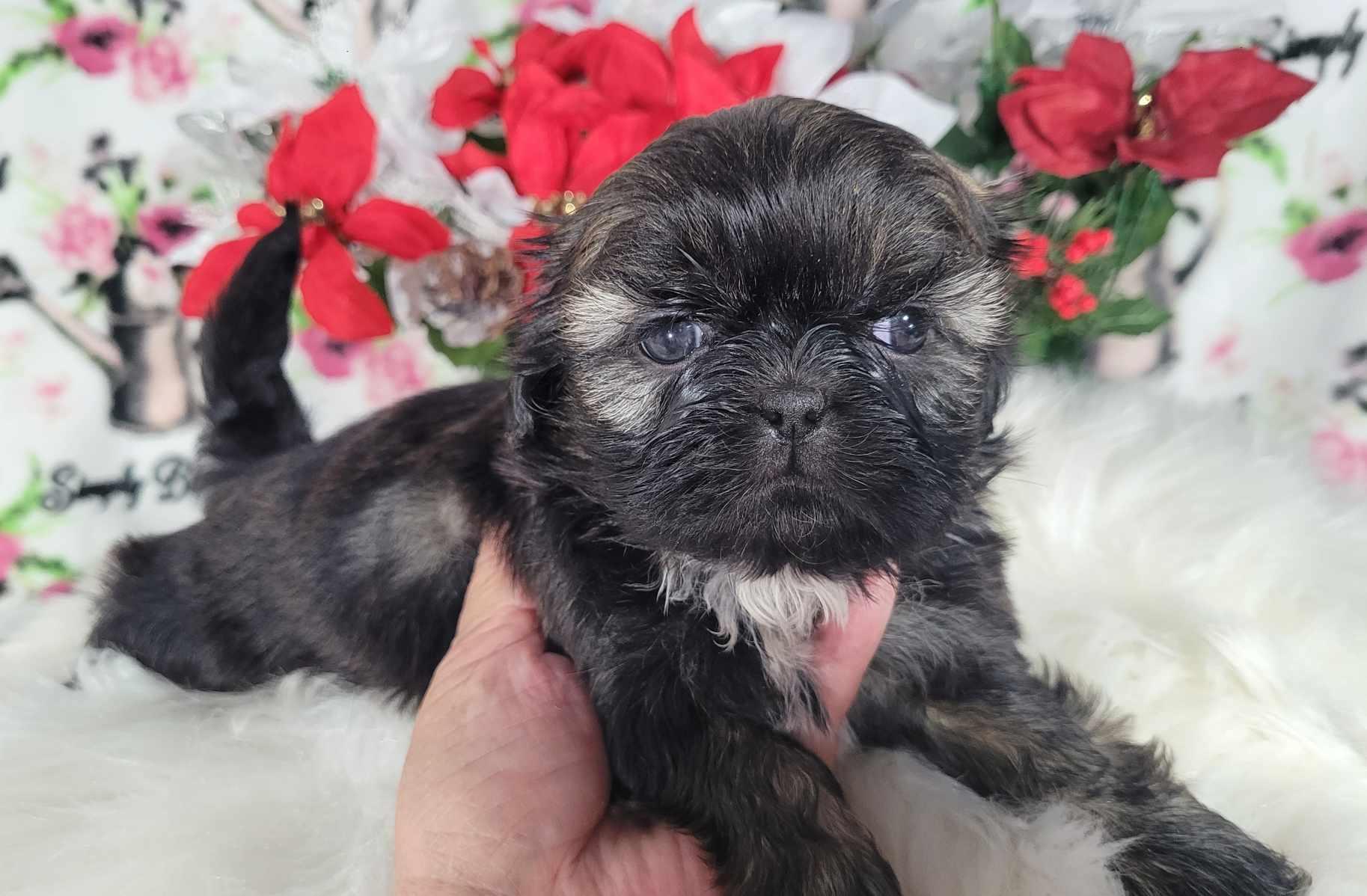Freida is a beautiful black, gray and white female Shih Tzu. She is a wonderful, dedicated, and attentive mommy to her babies. She is good-natured, loves attention, gives lots of hugs and kisses.