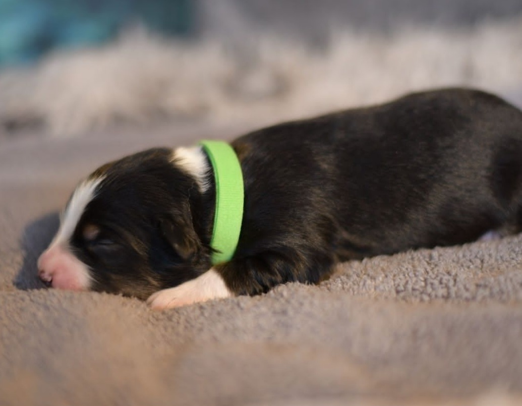Finn is a male Miniature Australian Shepherd. Carefully selected as a great representative of his breed, Jessica decided to make him part of their program. Jessica has passed Good Dog’s screening process, which involved a review of their breeding practices, environment, and the mental and physical health of their dogs.