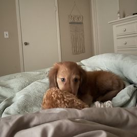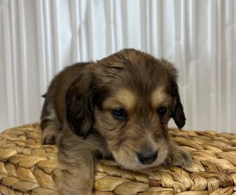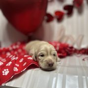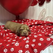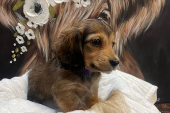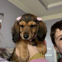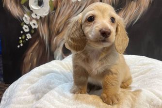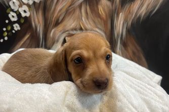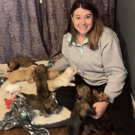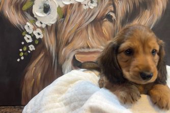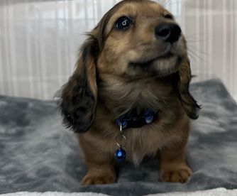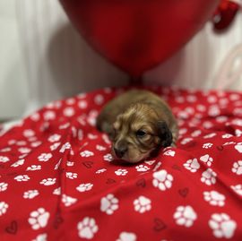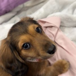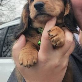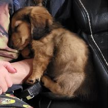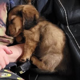 I was apprehensive at first about getting online and finding my fur baby from another state from someone I didn't know and couldn't see or interact with, but Good Dog made the process safe and easy. I was also very happy to eventually learn that Victoria was a very well selected breeder who truly cared about her pups and where they went to spend the rest of their lives. She was as interested in me as a future pet parent as I was in her as a breeder. She made the process super easy, always quickly answered questions, proactively checked in with me and gave me pictures, videos and updates and even checked in on me to see how I was doing and to ensure I was ready for Peanut's arrival. Although I was in Texas and she was in Arkansas, she made everything feel as safe and easy as if I had been in a nearby town with the ability to drop in. She even connected me with another wonderful lady, Christina, who transported my pup at a truly reasonable rate that was less expensive and involved than traveling to get him myself. Both Victoria and Christina made the whole experience easy and comfortable. Then, when I got my little Peanut boy, he was the sweetest and sassiest boy I had ever seen and he was exactly what I was expecting, which made me so very happy. Despite dachshunds being notoriously difficult to potty train, Victoria had already started the process and our boy has been with us for 5 days now and he's yet to use anything other than a pee pad when in the house and he's also very comfortable going outside in the small gated area we created for him. Loud noises also don't seem to bother him since she already acclimated him to that, and he's confident and loving and loves meeting new people and socializing. He's just about the best pre-trained puppy I've ever had and I know that is all to Victoria's credit. All we had to do was pick up where she left off and she made our role in that so much easier than it's ever been before. She also stressed that she wants to stay in touch and get updates, which also makes me very happy and even more confident than ever that I picked the right breeder. Thank you so very much, Victoria, for my sweet Peanut! Should I ever decide to get another pup in the future, you will be my first call and I will undoubtedly tell others about you as my experience here as well. Thank you!!!