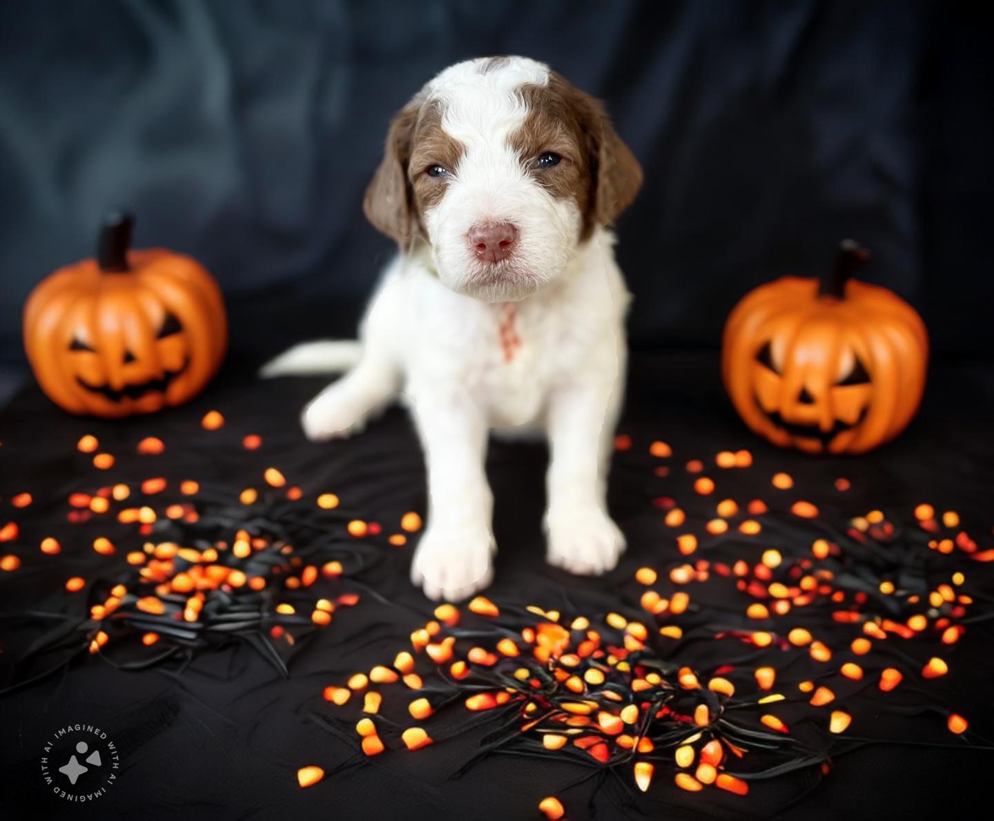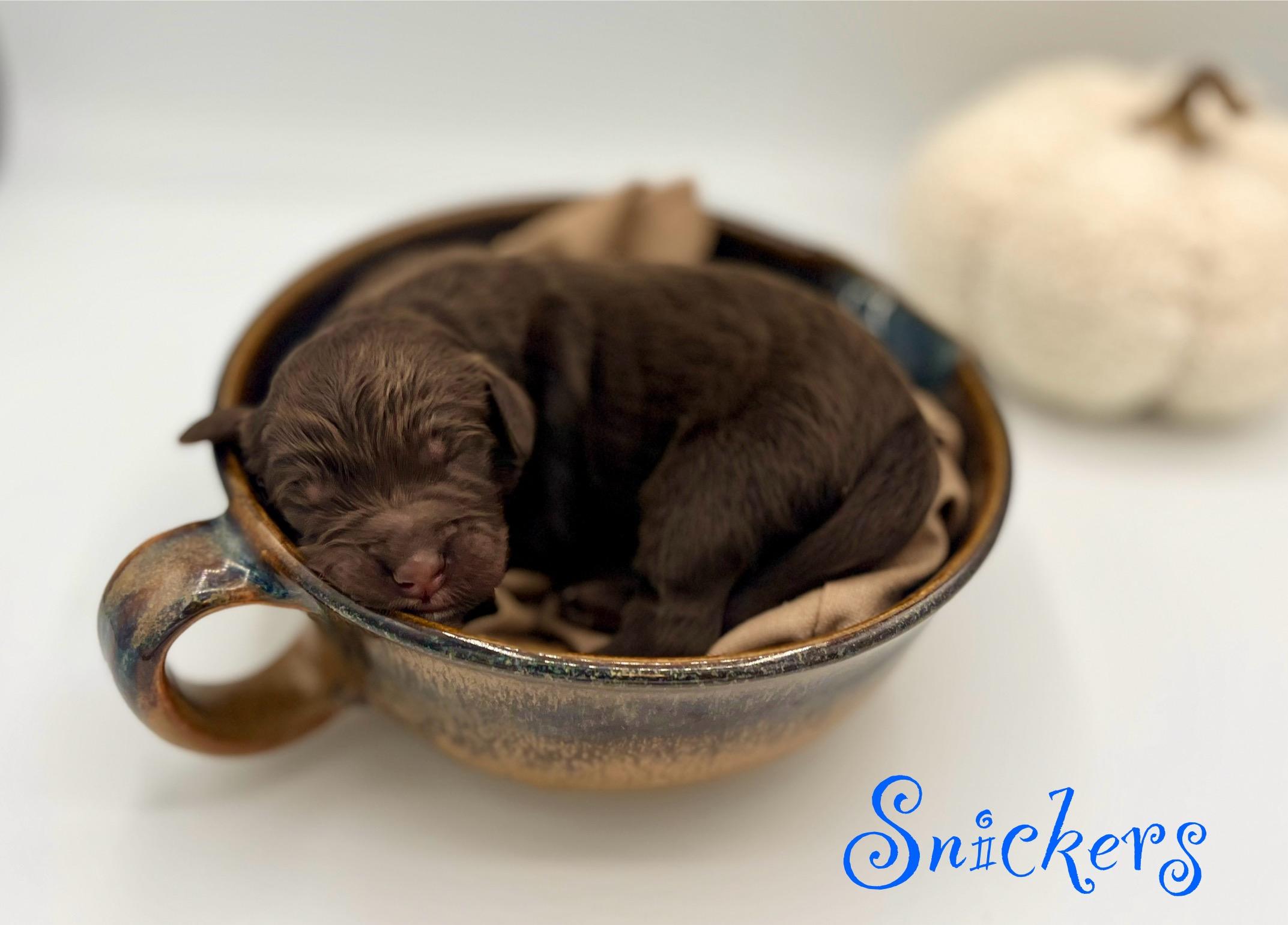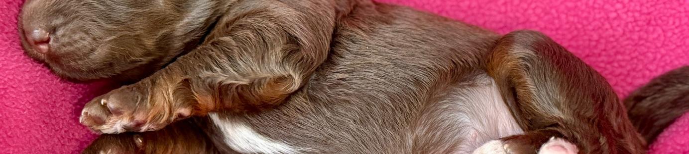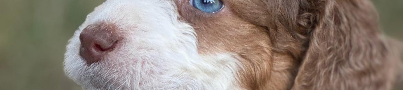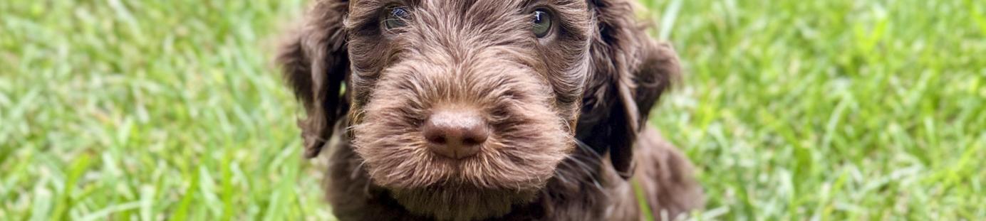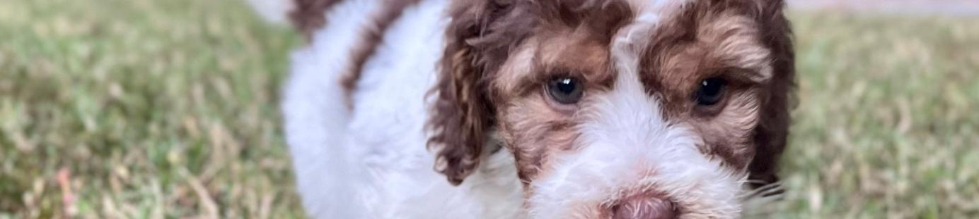 Our Poodle puppies include brown, cafe au lait, and parti. Goldendoodle puppies include cream, apricot, chocolate, merle, and parti. Colors will vary depending on the parent dogs.