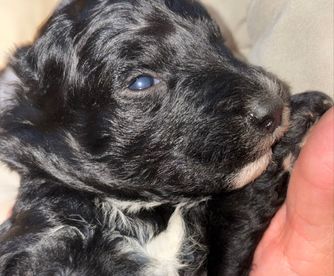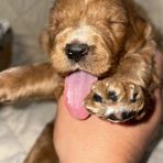 Carin is a blue Merle Goldendoodles and dad to our current Leap Day litter. He is a calm dood, and is such a mama’s boy!