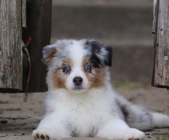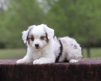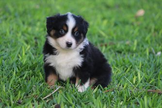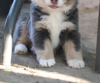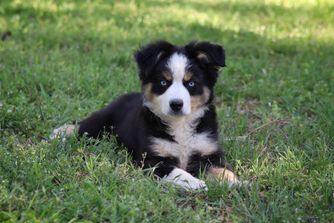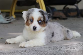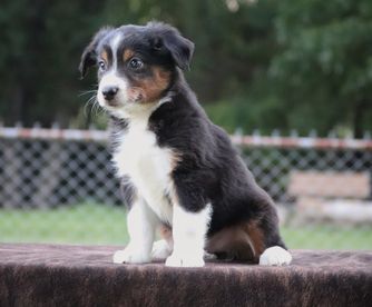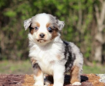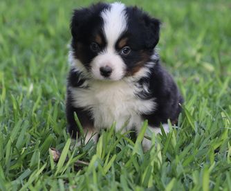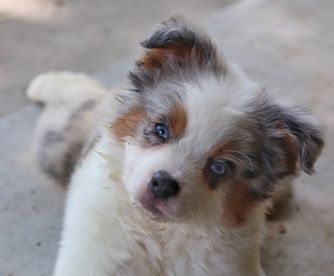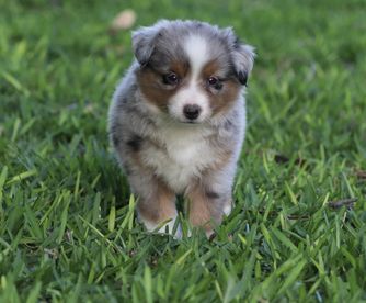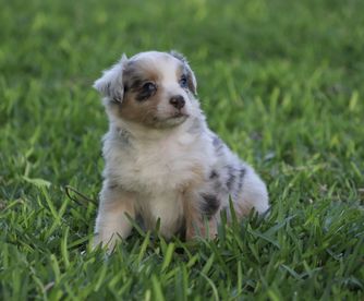 Our Miniature American Shepherd puppies include black, red merle, blue merle, and red. Miniature Australian Shepherd puppies include blue merle, red merle, red, and black. Colors will vary depending on the parent dogs.