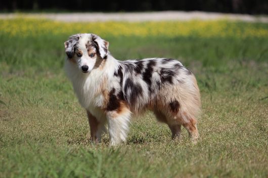 Suede is a male Miniature Australian Shepherd. Carefully selected as a great representative of his breed, Kaylea decided to make him part of their program. Kaylea has passed Good Dog’s screening process, which involved a review of their breeding practices, environment, and the mental and physical health of their dogs.