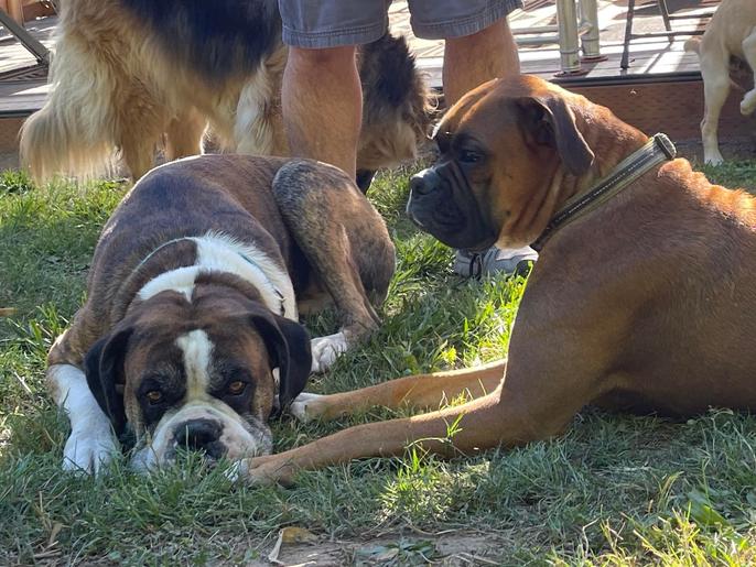 We have been boxer lover/owners since 1993. we were introduced to the breed by a family in need of rehoming their beautiful boy, and I wouldn't have any other breed to raise alongside my children and grand children! We lost that first amazing soul to ARVC and since then have been on a quest to provide family's with boxers free of this life threatening genetic disorder.