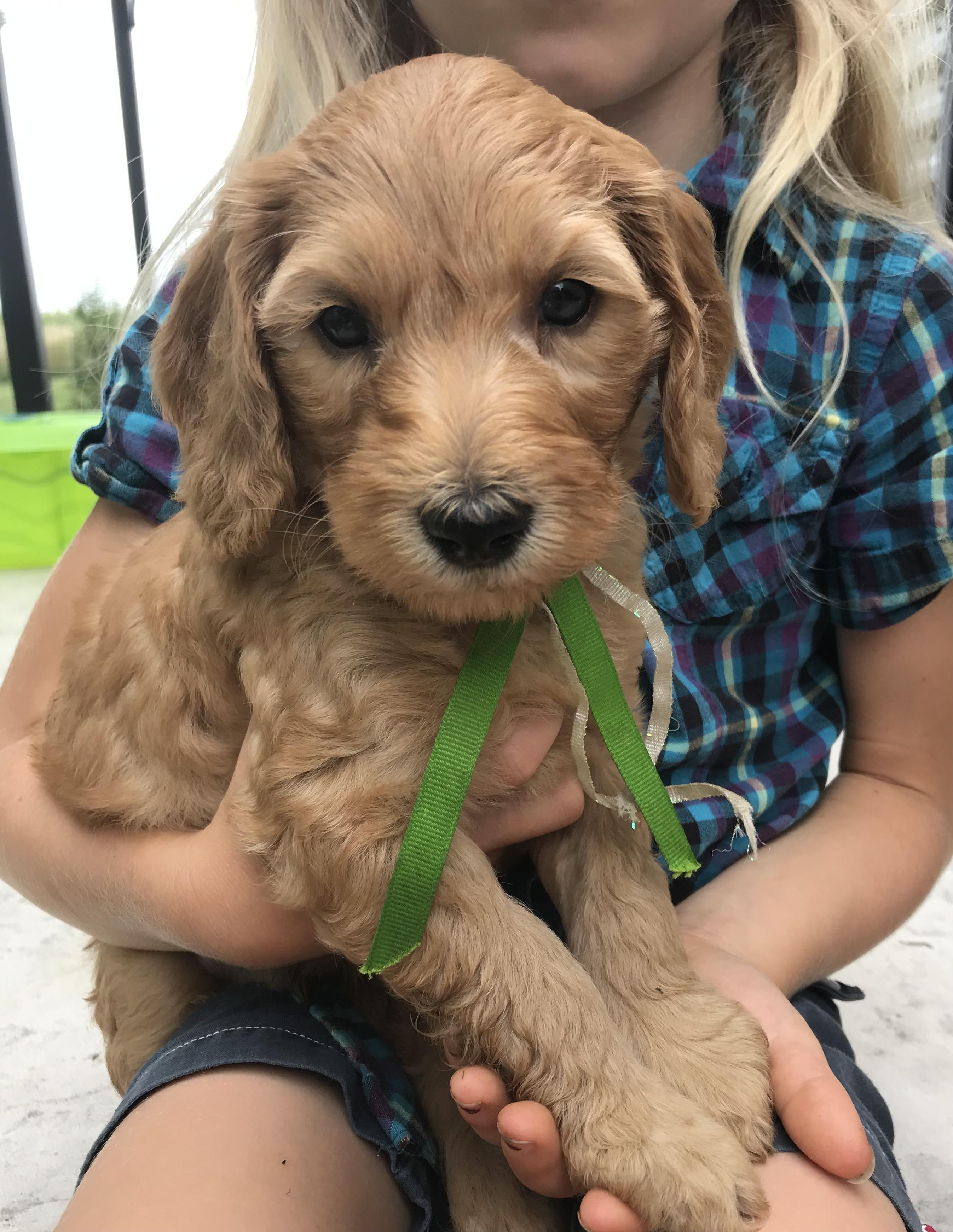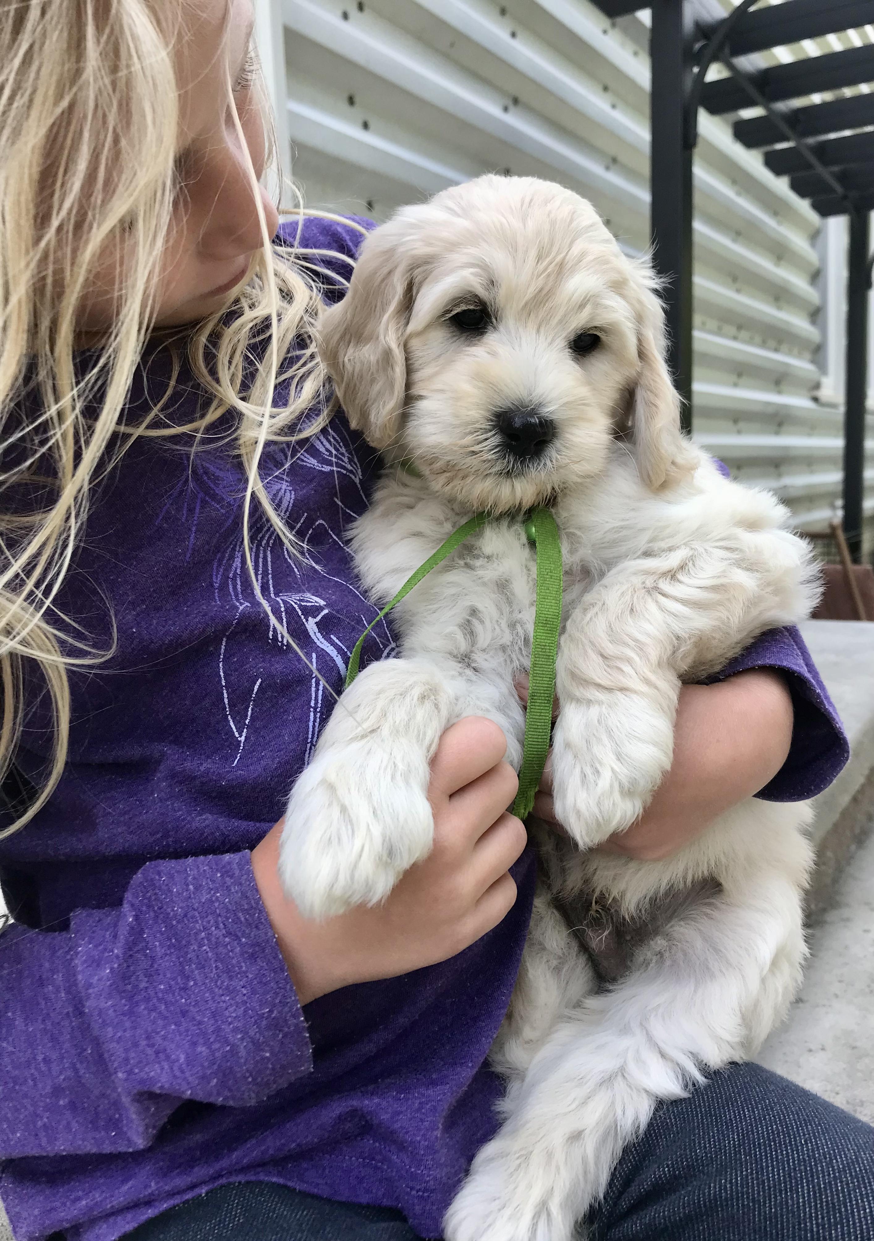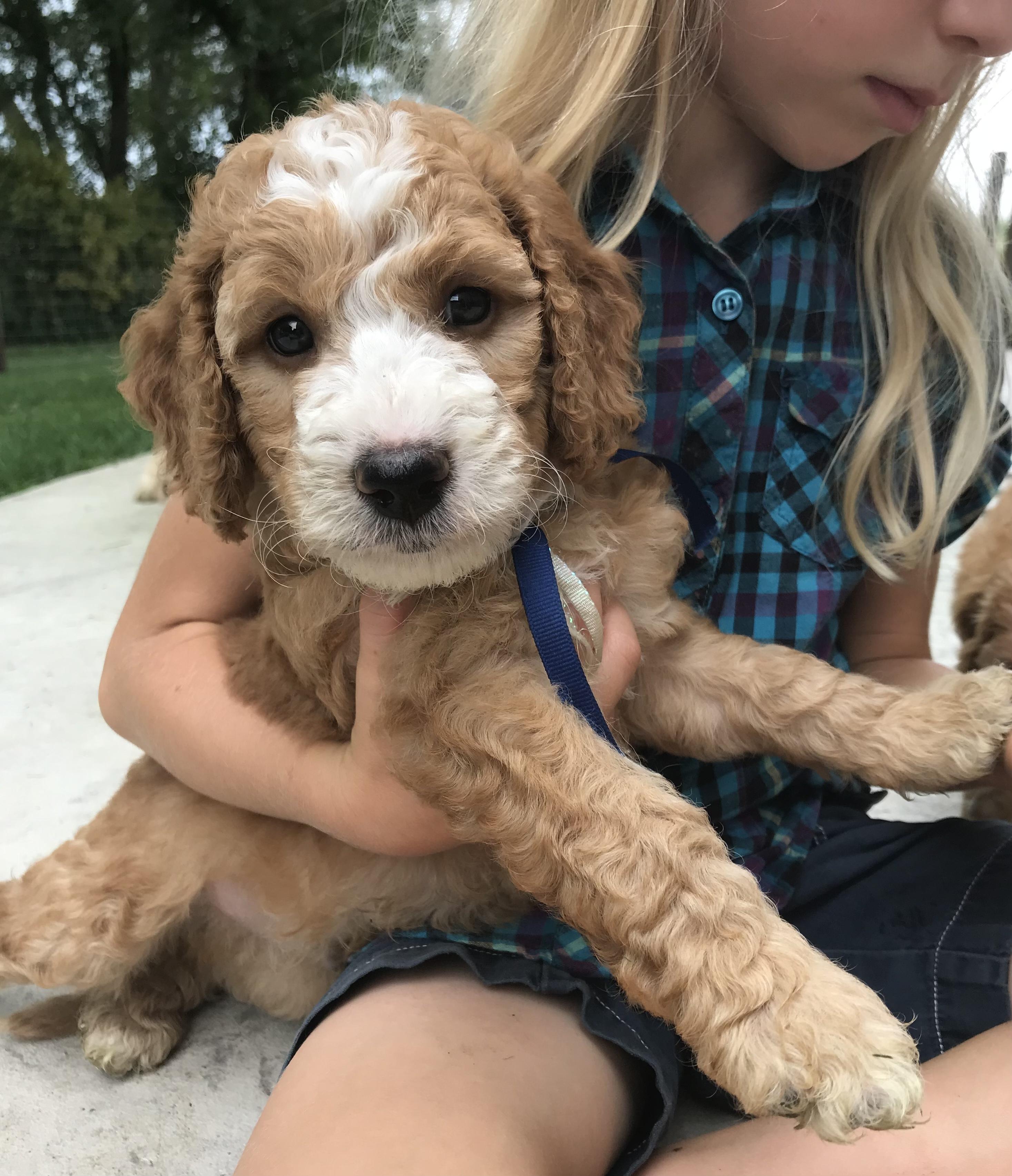 I'm Violet A., the breeder behind Violet View Iowa Goldendoodles located in Denison, IA. In order to produce the best quality puppies, we breed with a focus on health, temperament. We do extensive DNA and OFA Health Testing. We screen parent dogs traits like calmness and intelligence before ever adding them into our program, and start training our puppies at 3 weeks old! Our puppies come with the whole package! - Weekly video link to see what they are up to. - Socialization by small children and enriched environment. - Early Neurological Stimulation to deal with stressors better. - Puppy go home bag with food, collar + leash, & educational material. - Vet Checked, Dewormed and a pre-registered microchip. - Health tested parents that are free of inheritable disease traits, your puppy has a 2 year health guarantee too! - Coat tested parents so you know that your puppy will not be a shedding doodle. - Honest size estimates, something that can be a frustration to doodle buyers. - Coaching to help make the transition of bringing a puppy home an easy process. - On going breeder support for all your questions. - Started crate training and raised in a way to make housebreaking a breeze! - Extra training options for a fee. - Lifetime breeder help rehoming if there is ever an issue. We do not contribute to shelter dogs.