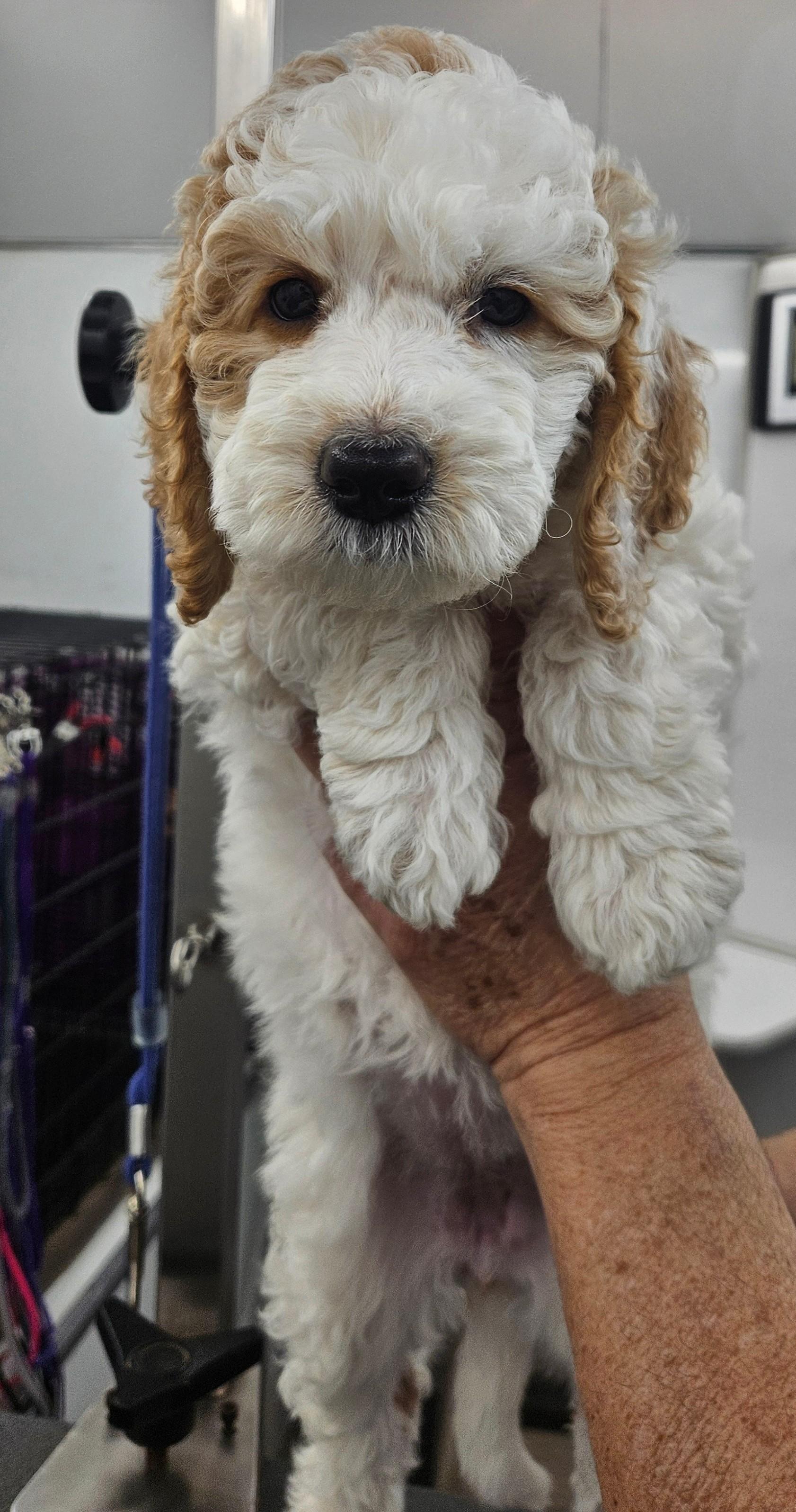 Mae is a female Poodle. Carefully selected as a great representative of her breed, Brenda decided to make her part of their program. Brenda has passed Good Dog’s screening process, which involved a review of their breeding practices, environment, and the mental and physical health of their dogs.