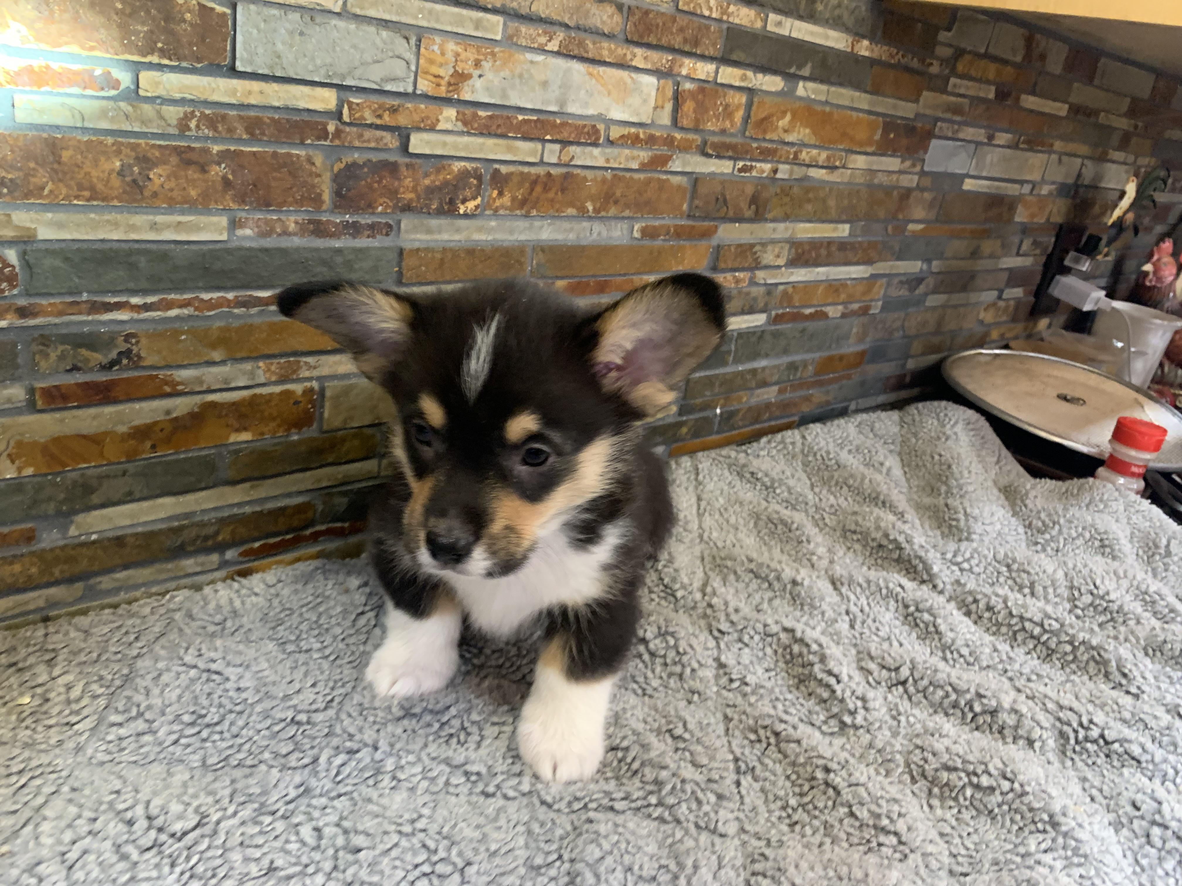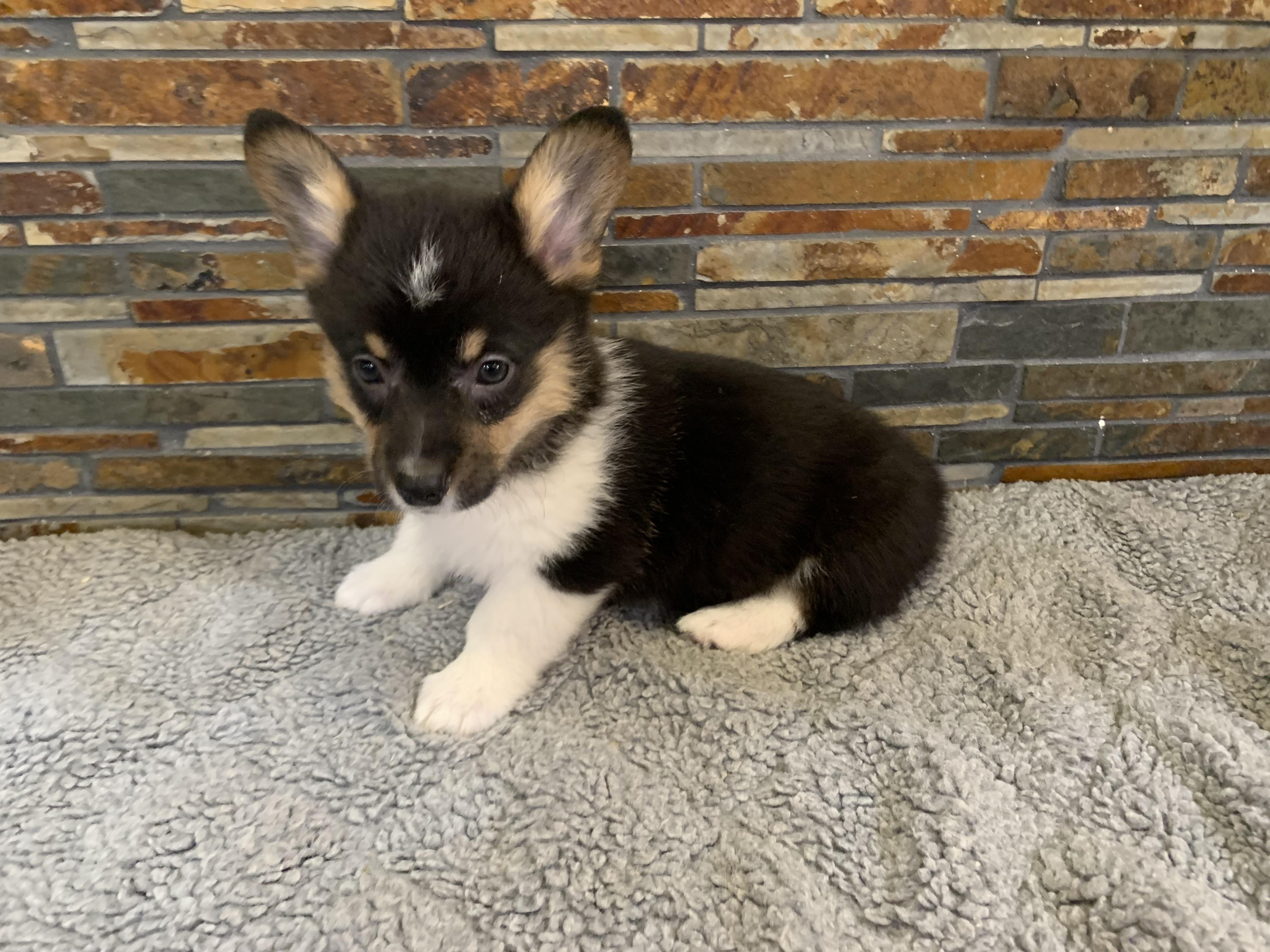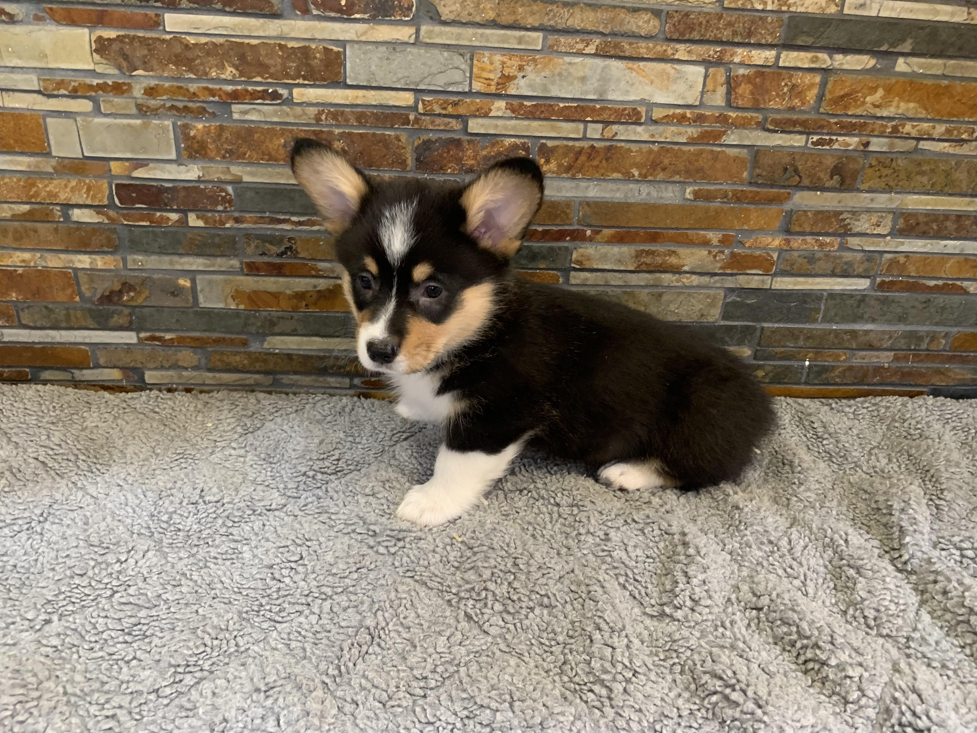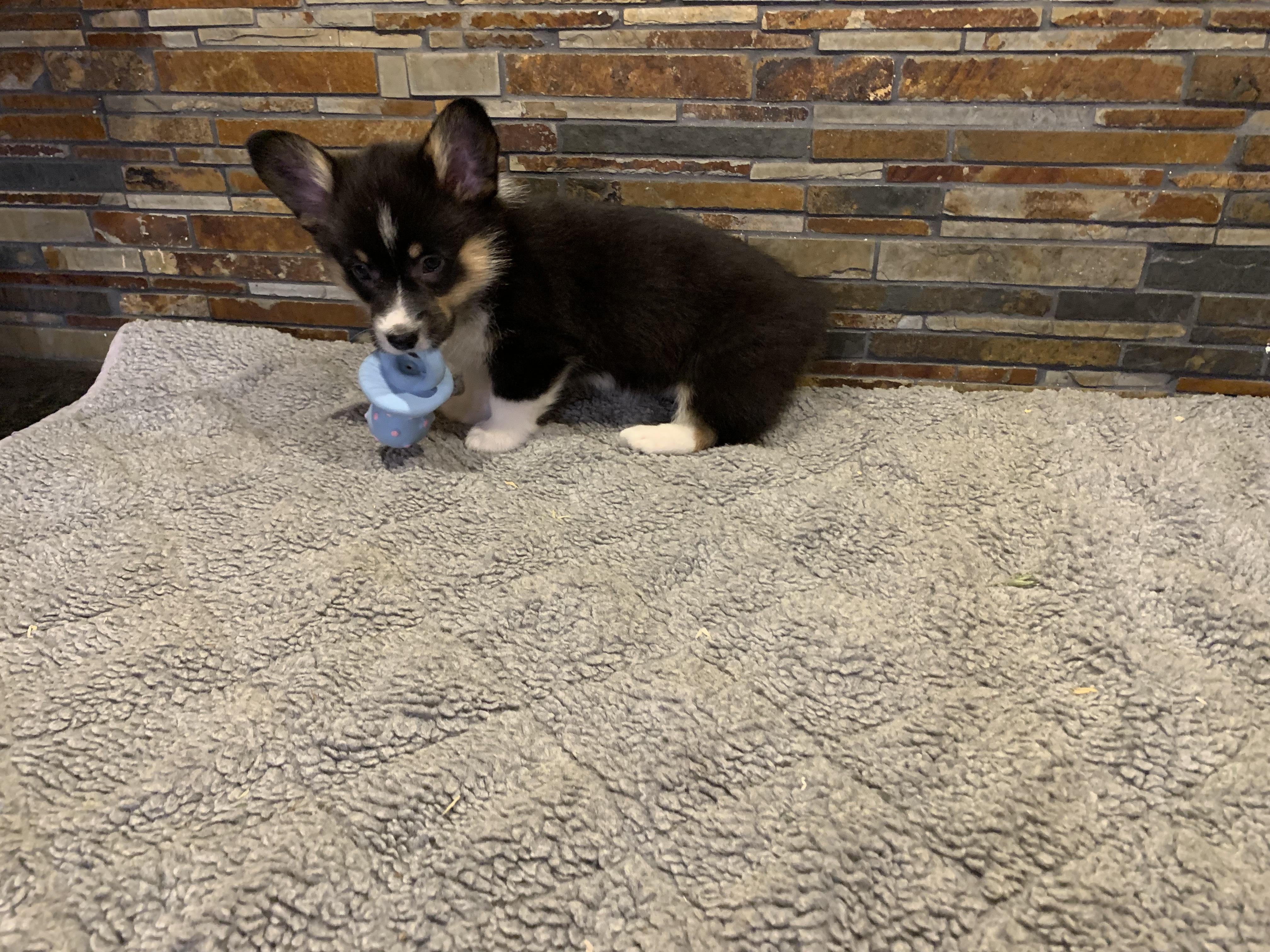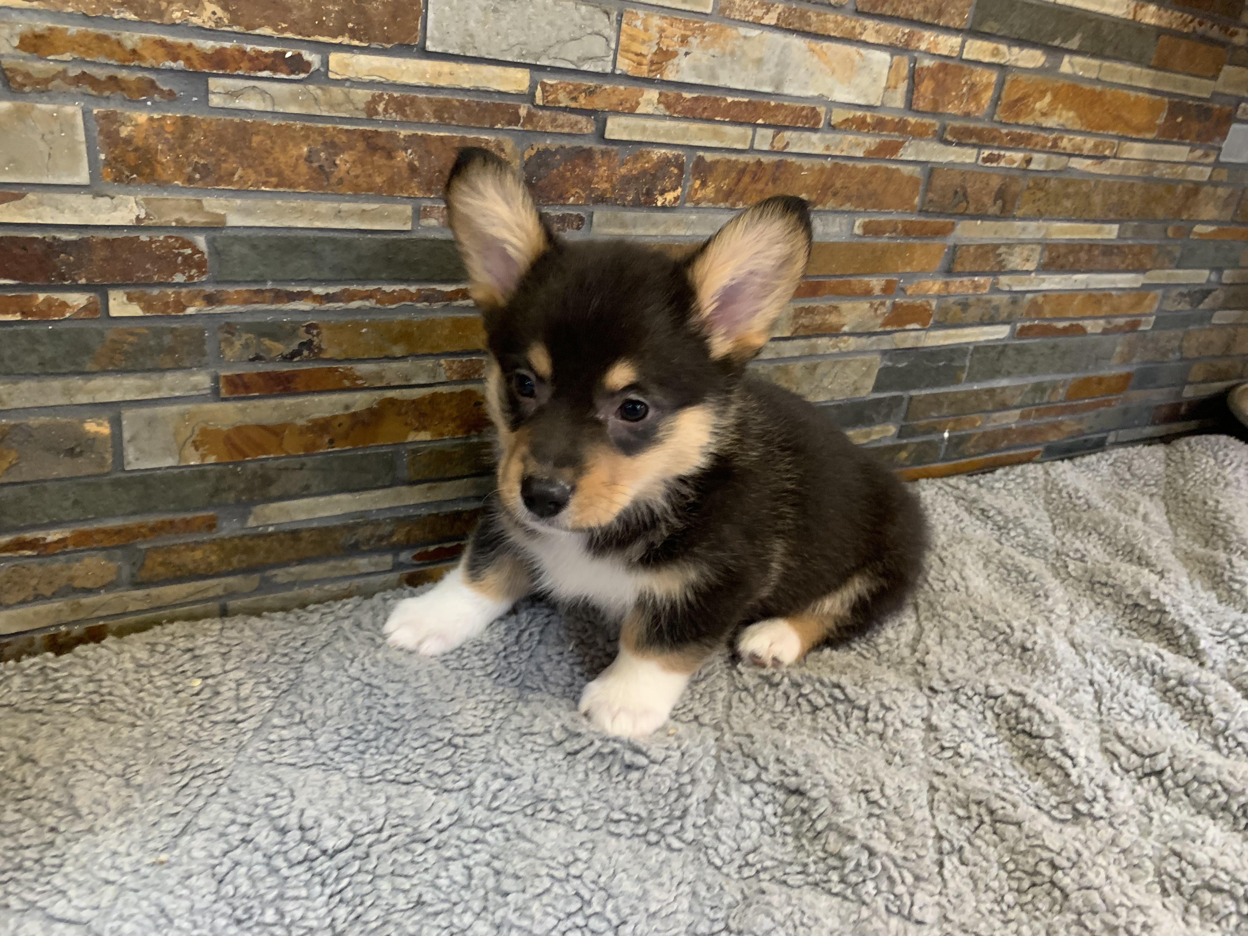 Our Pembroke Welsh Corgi puppies include black and tan and blue. Colors will vary depending on the parent dogs.