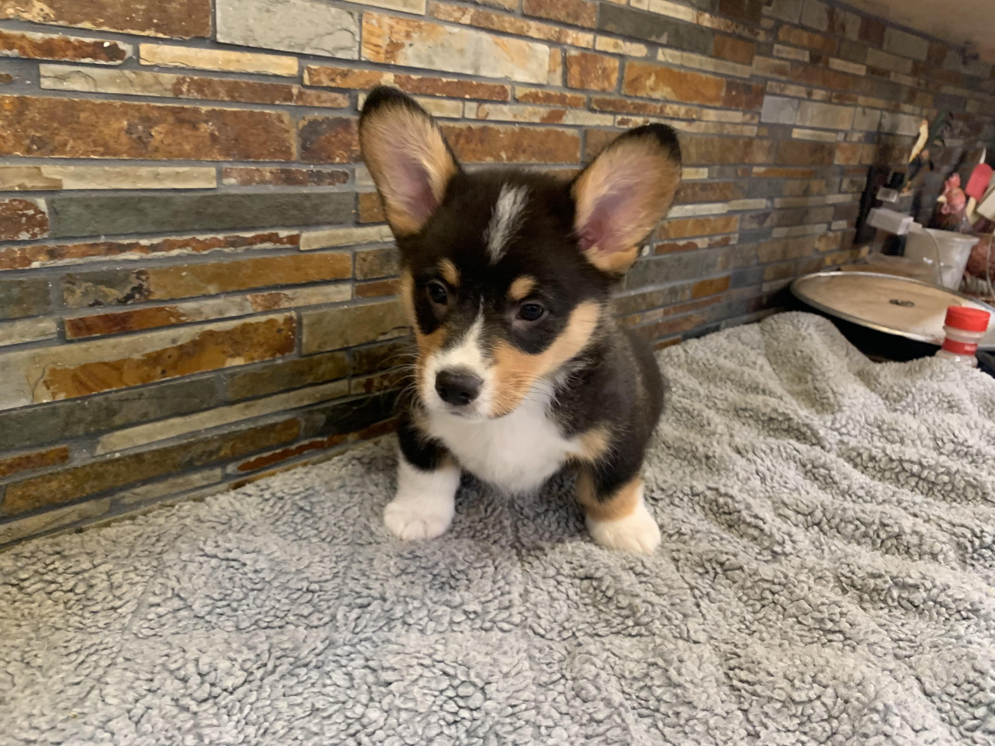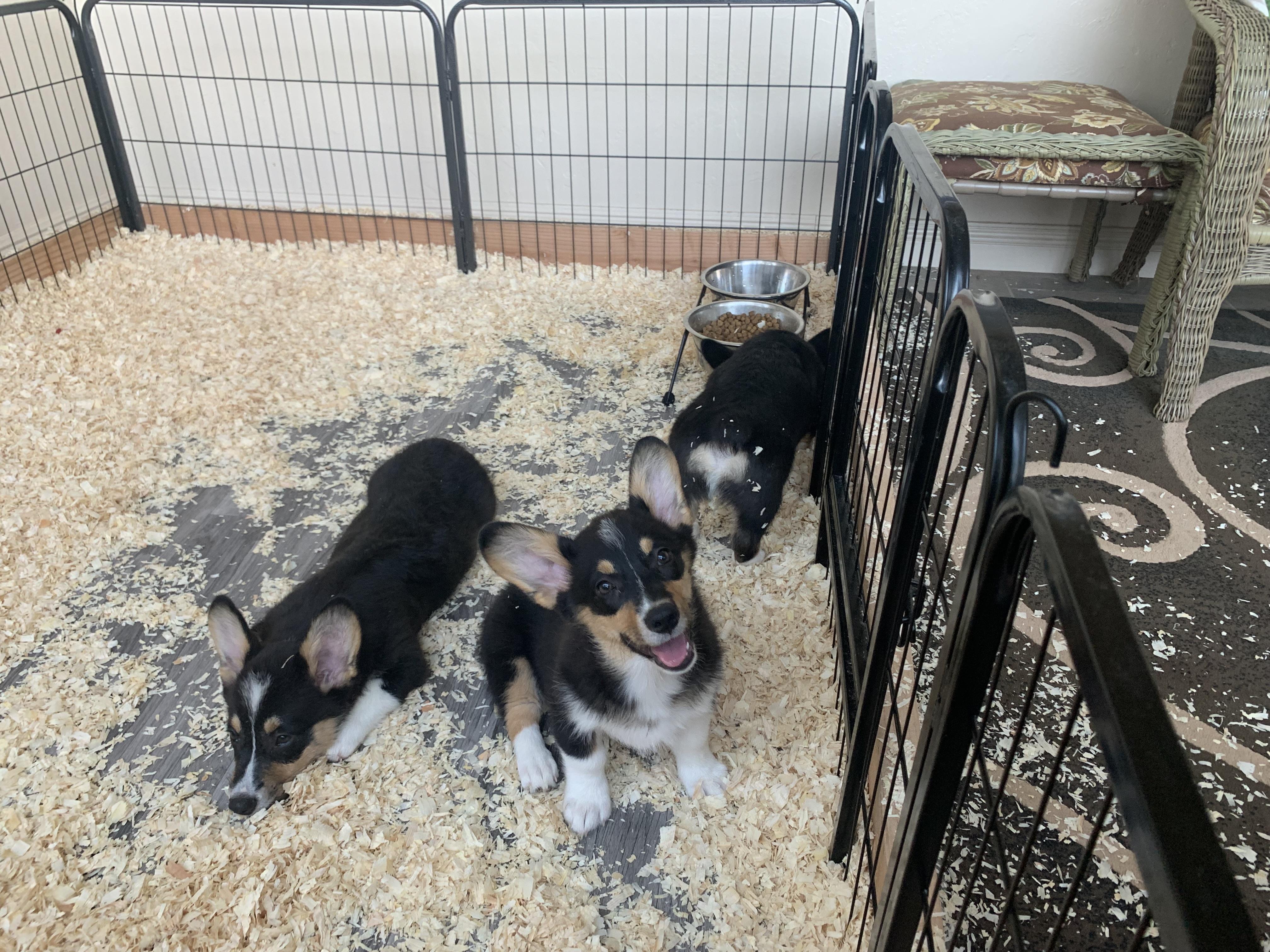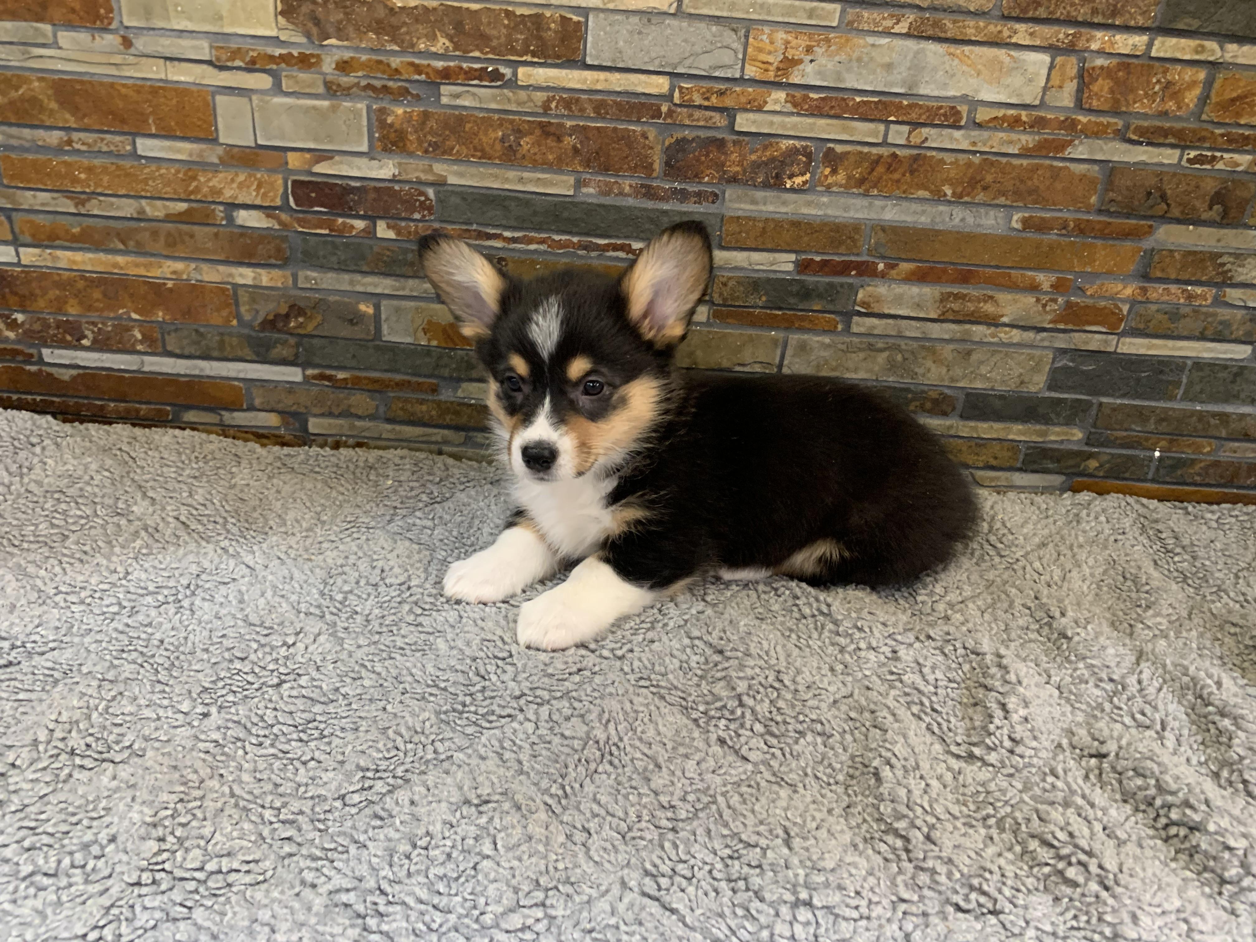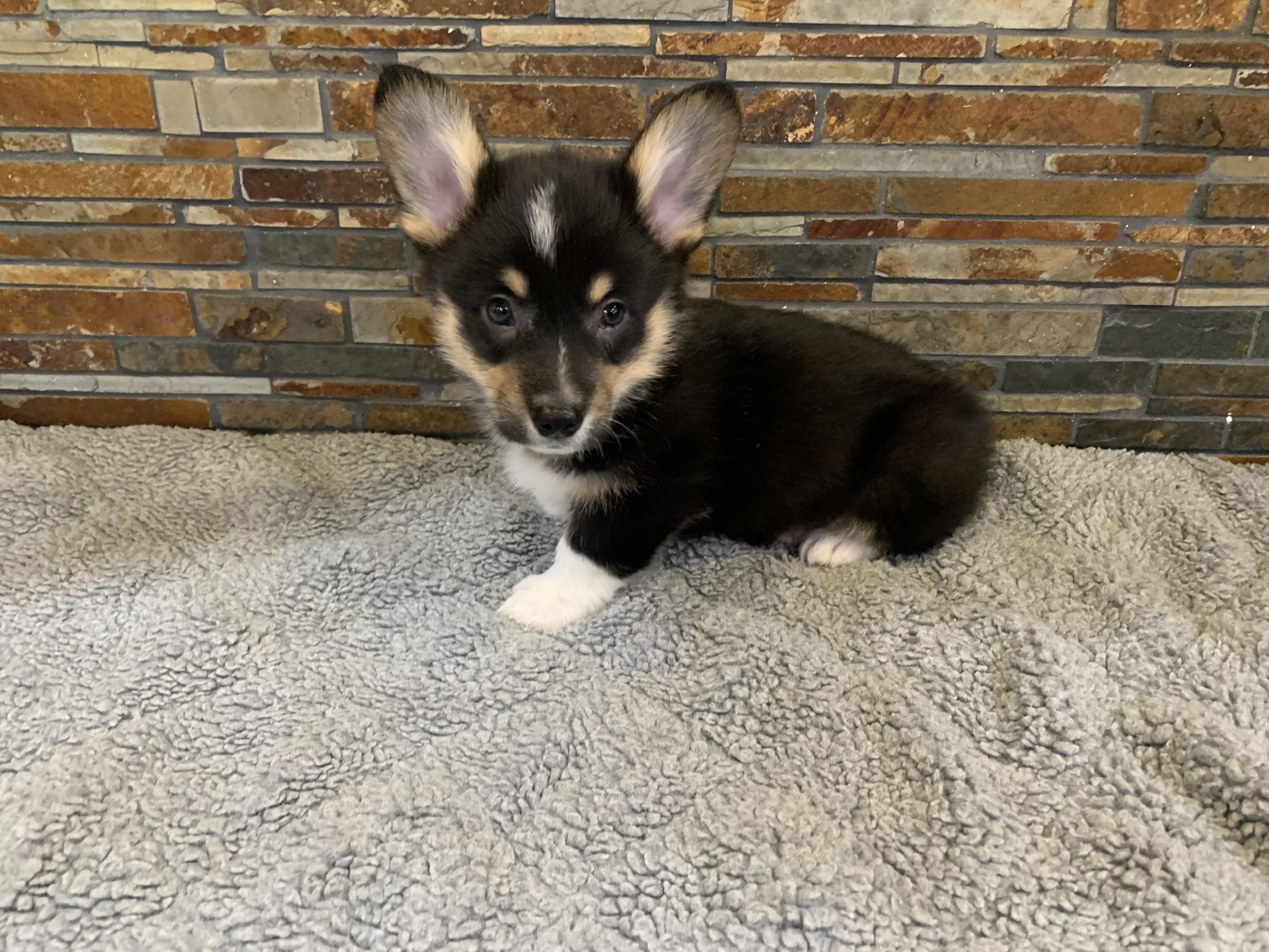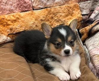 Our Pembroke Welsh Corgi puppies include black and tan and blue. Colors will vary depending on the parent dogs.