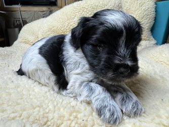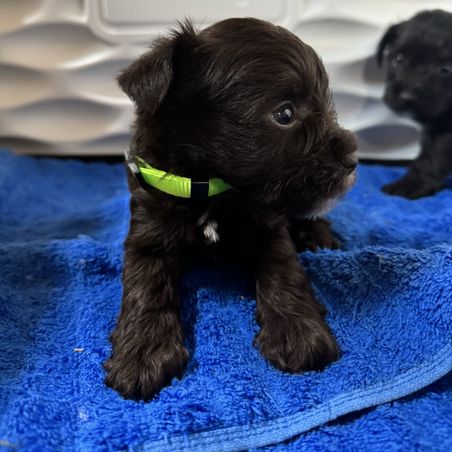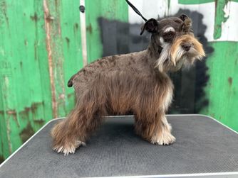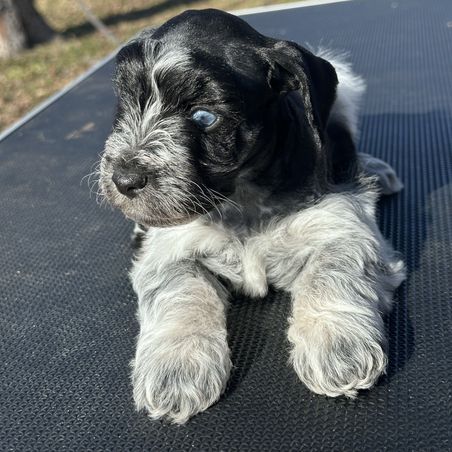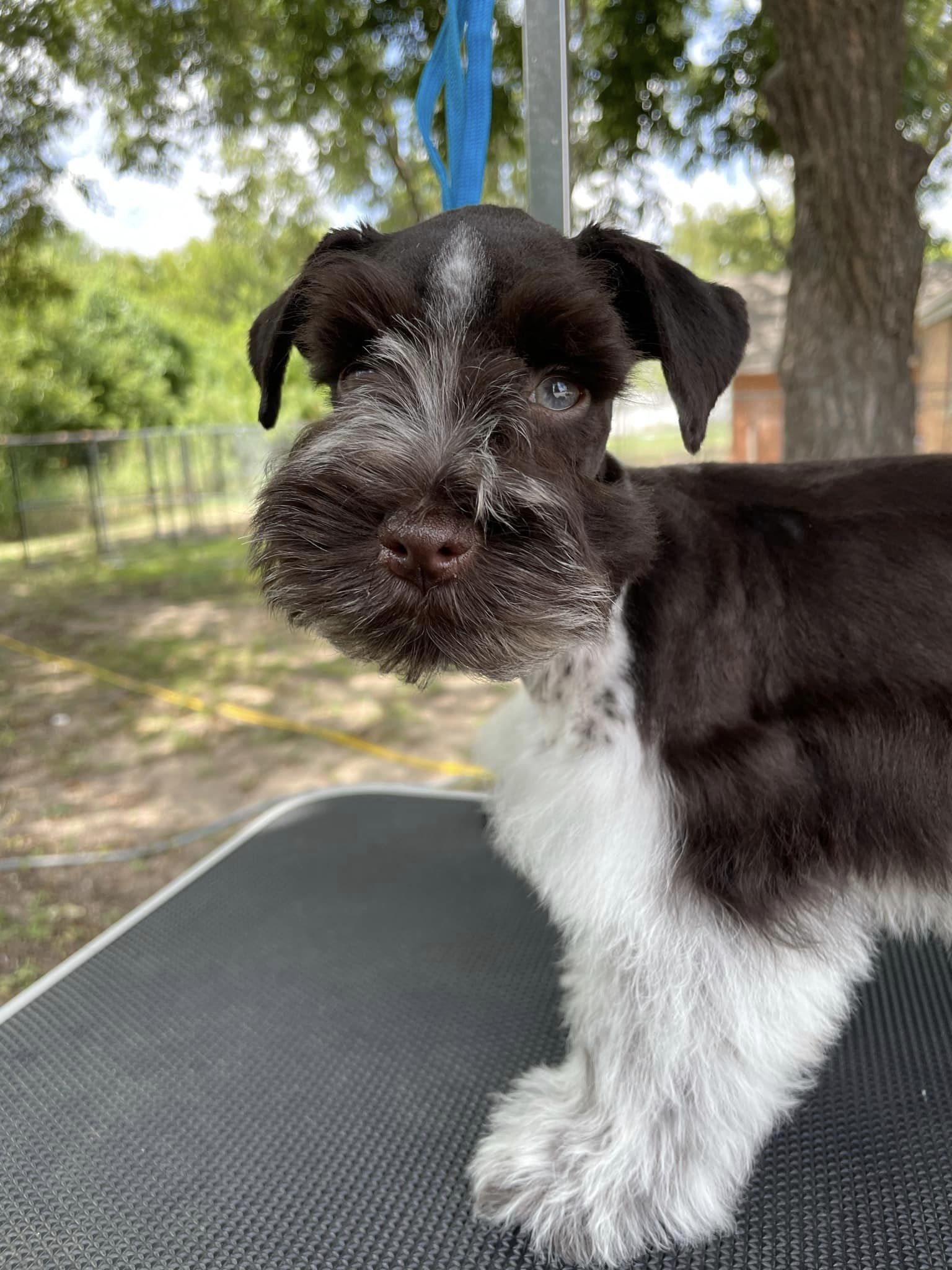 I'm Garrett W., the breeder behind Virgil Farms located in Decatur, TX. A miniature schnauzer puppy is a small, sturdy, and lively dog breed that is known for its distinctive appearance and charming personality. Our puppies typically weigh between 8 and 12 pounds and stand approximately 10 to 14 inches tall at the shoulder.