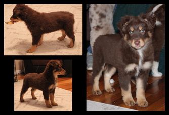 Our puppies include black, red merle, blue merle, and red. Colors will vary depending on the parent dogs.