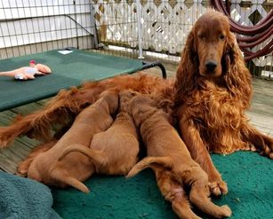 I strive to breed healthy, quality pups that can fit any lifestyle. I take pride in raising well-tempered and socialized puppies who can excel in work, show, or as beloved companions. I'd be honored to introduce you to your next beloved and furry Irish Setter!