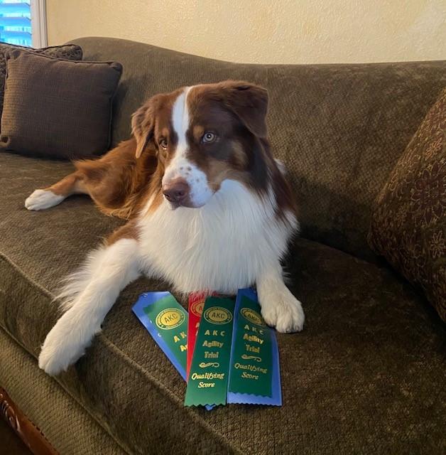 Eagan is a male Australian Shepherd. Carefully selected as a great representative of his breed, Kathy decided to make him part of their program. Kathy has passed Good Dog’s screening process, which involved a review of their breeding practices, environment, and the mental and physical health of their dogs.