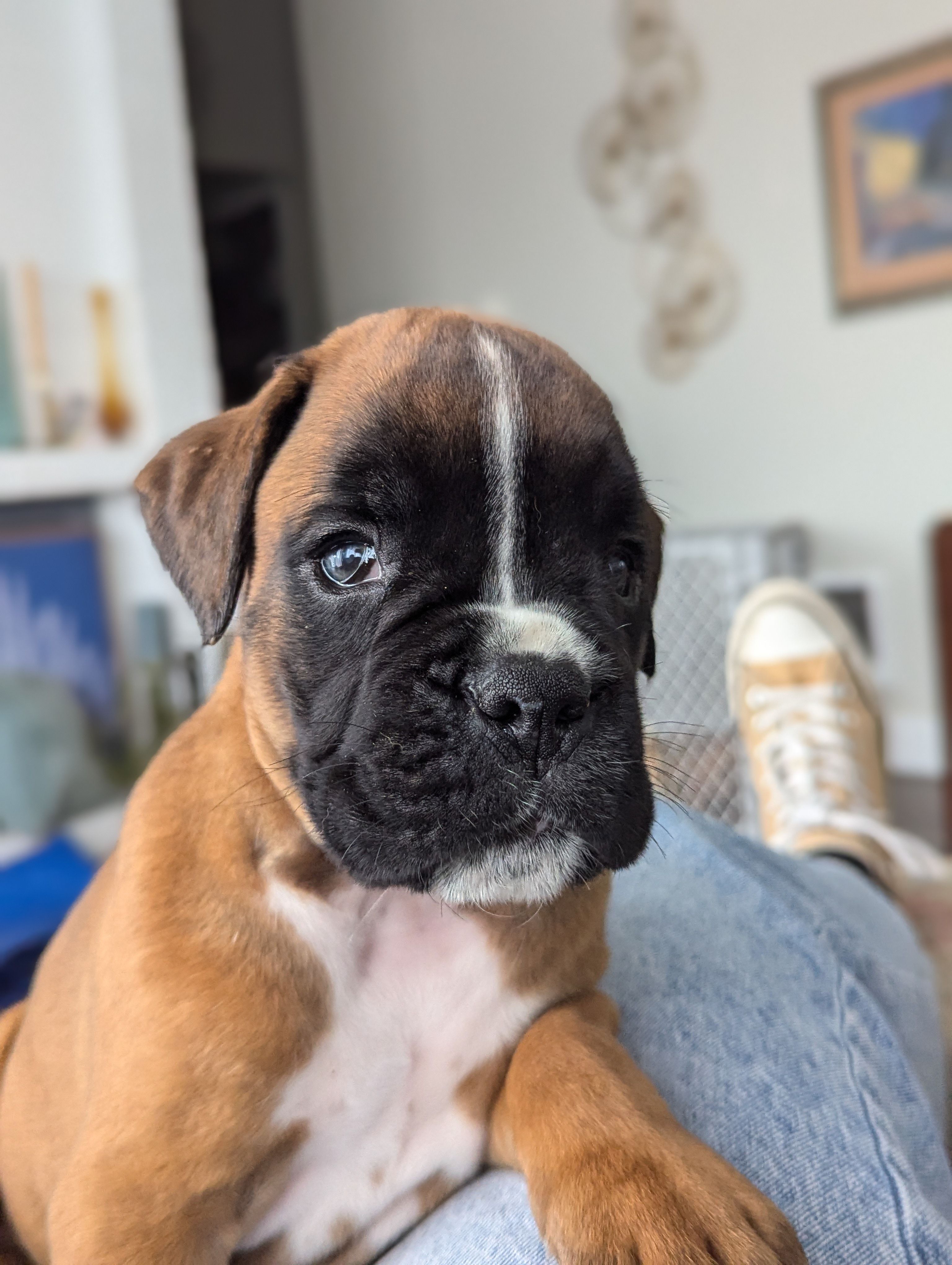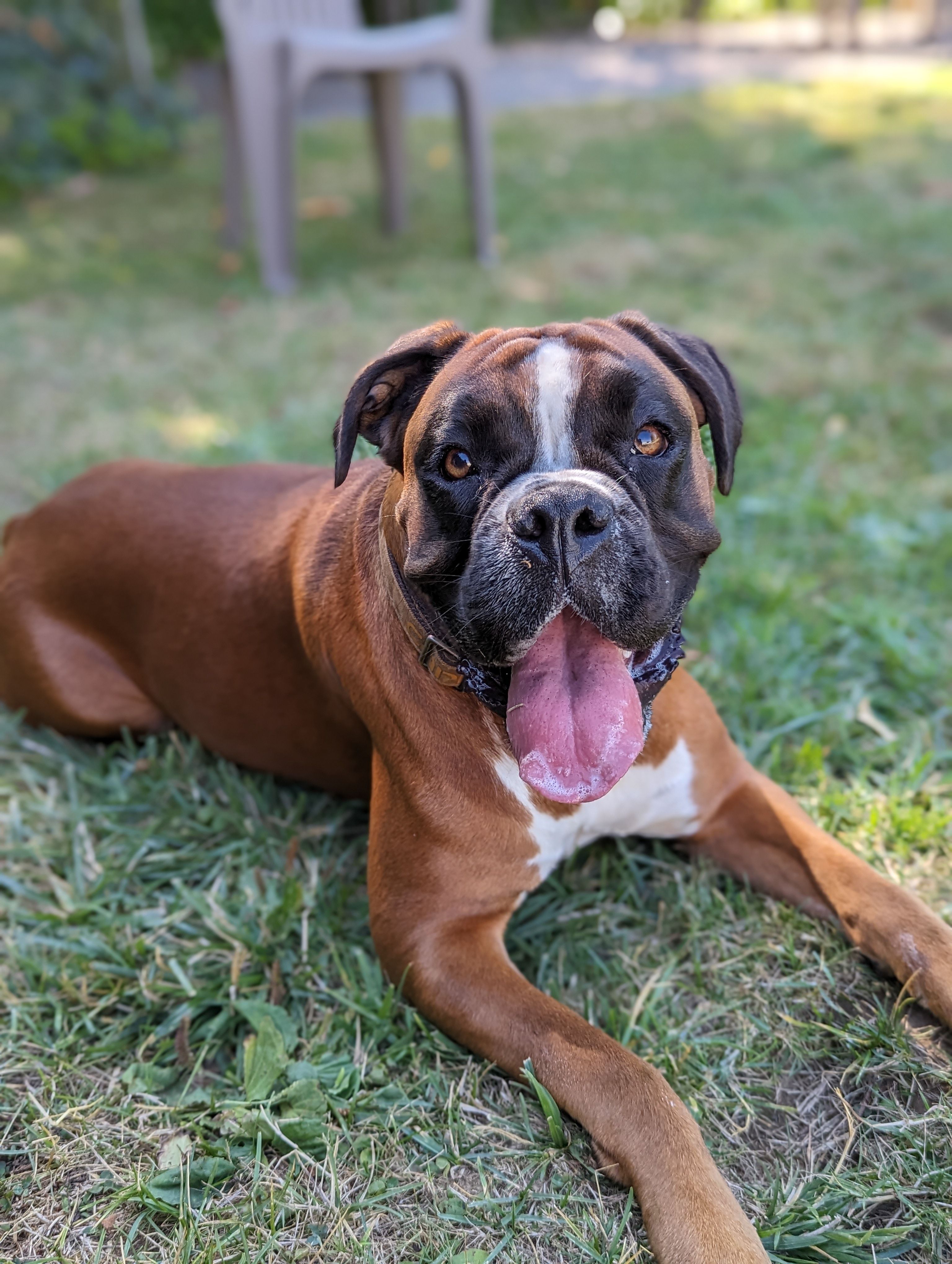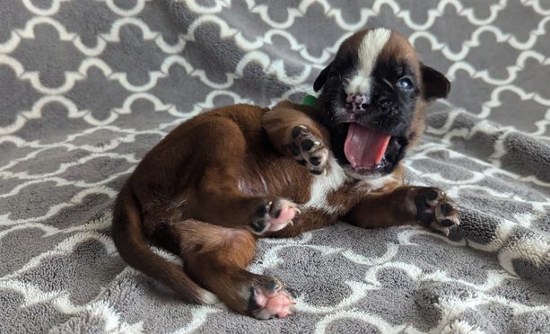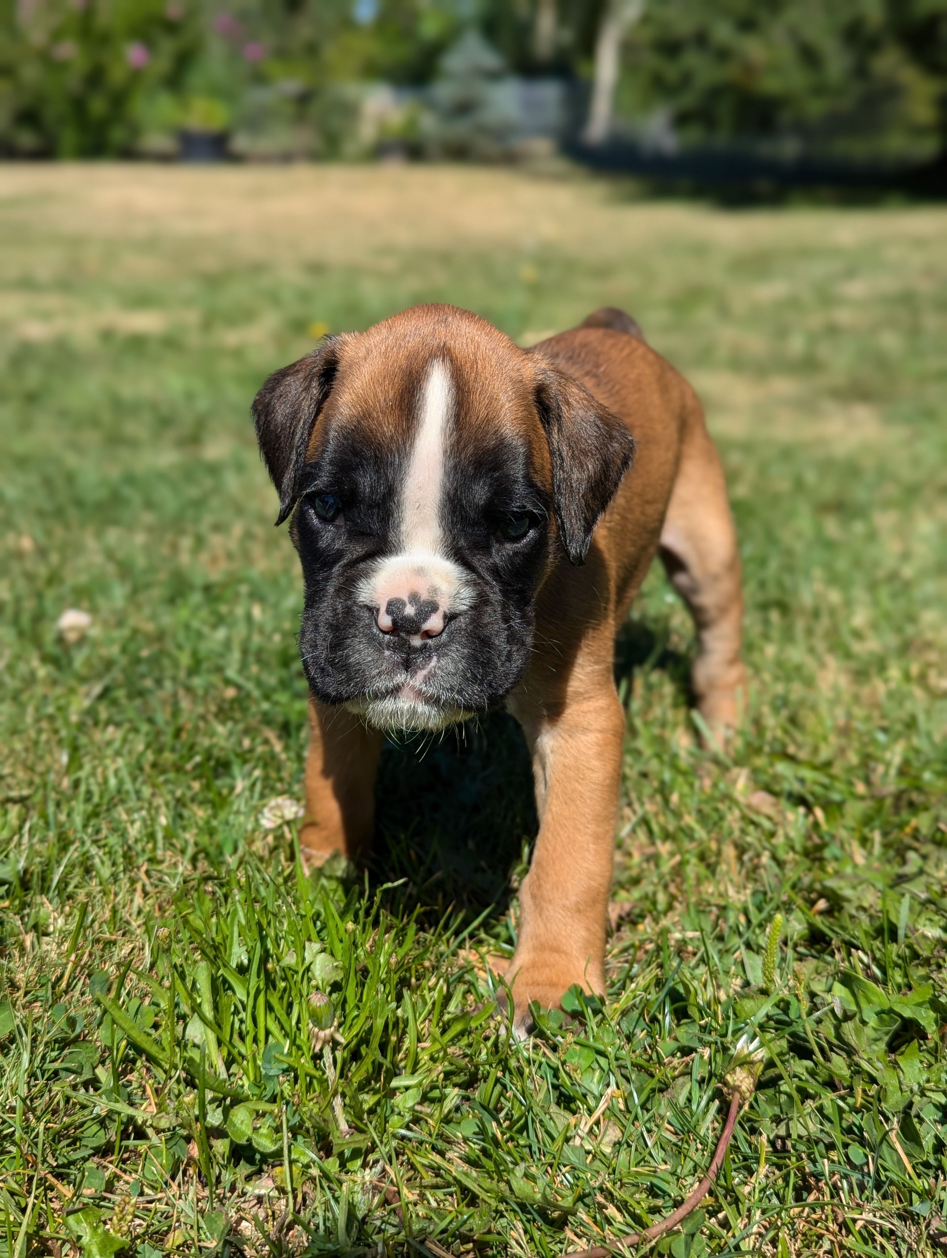Our beautiful purebred European boxer from imported lines. Her sire was imported directly from Serbia and her dam from Slovakia. We were able to reserve this sweet girl from Serenity boxers and we feel so lucky! She has incredible conformation and temperament. She just had her first litter in July of 2024.