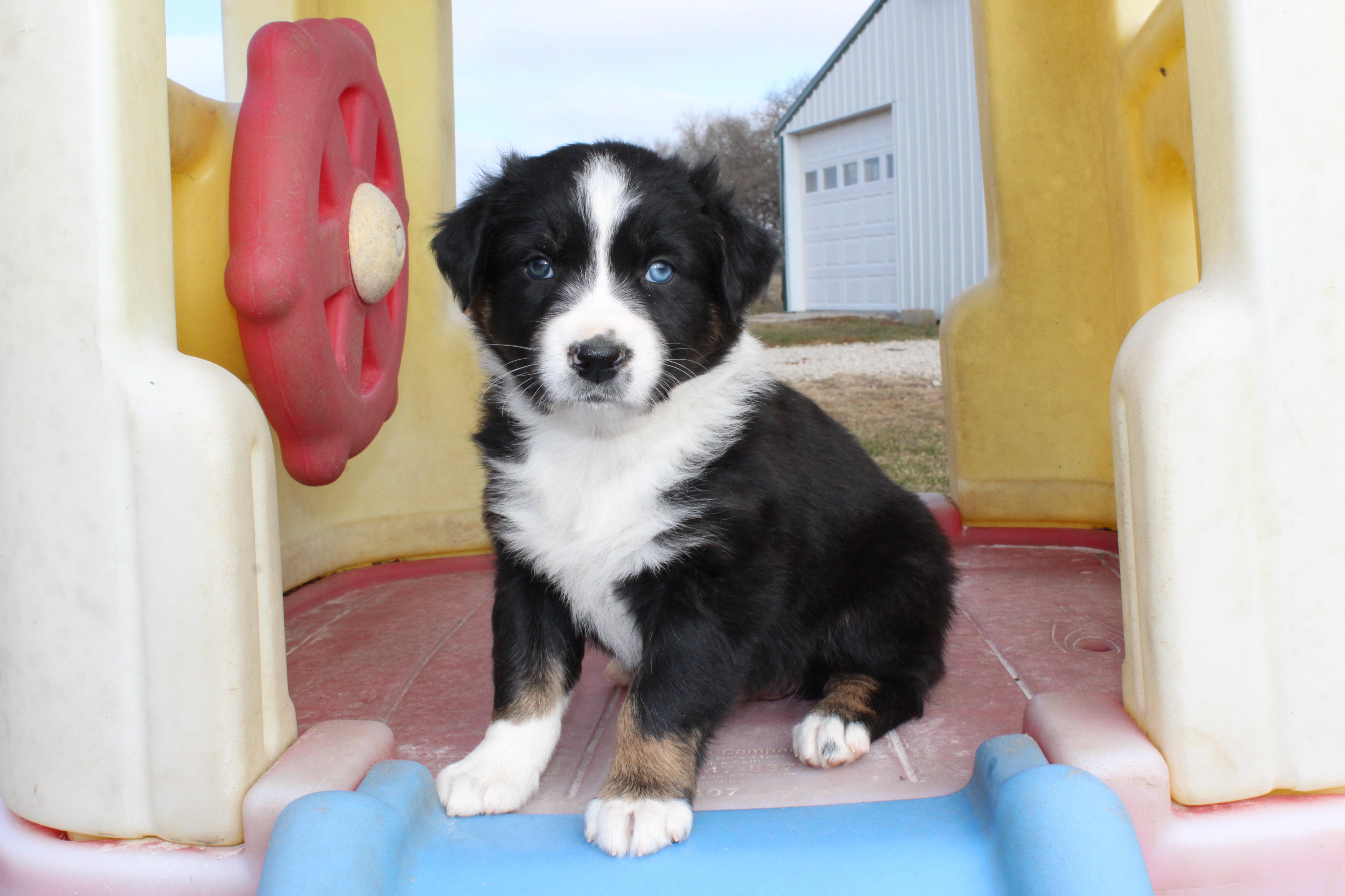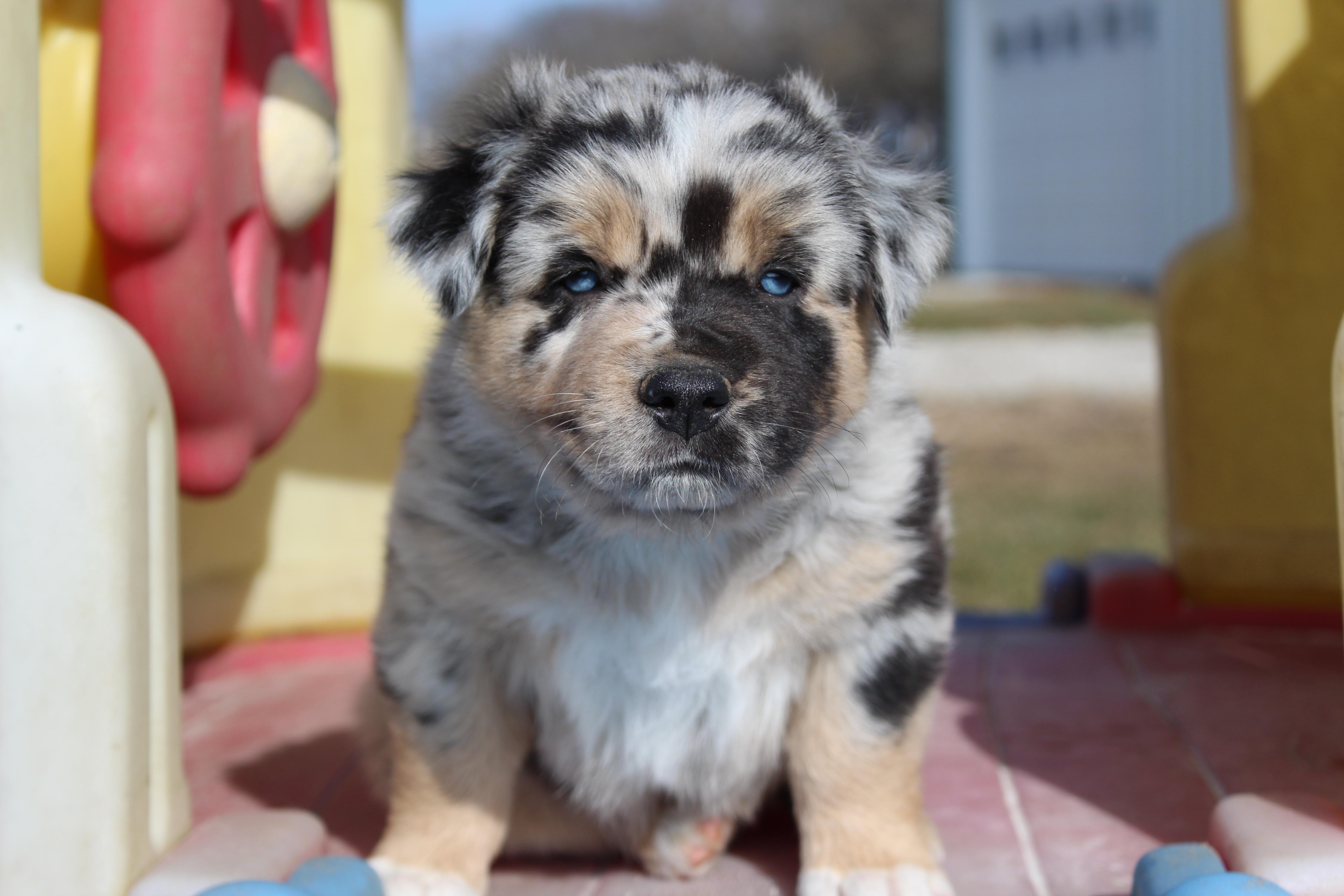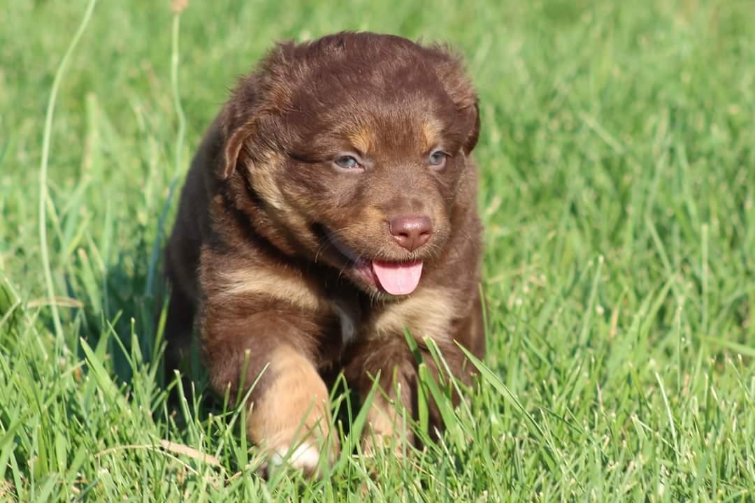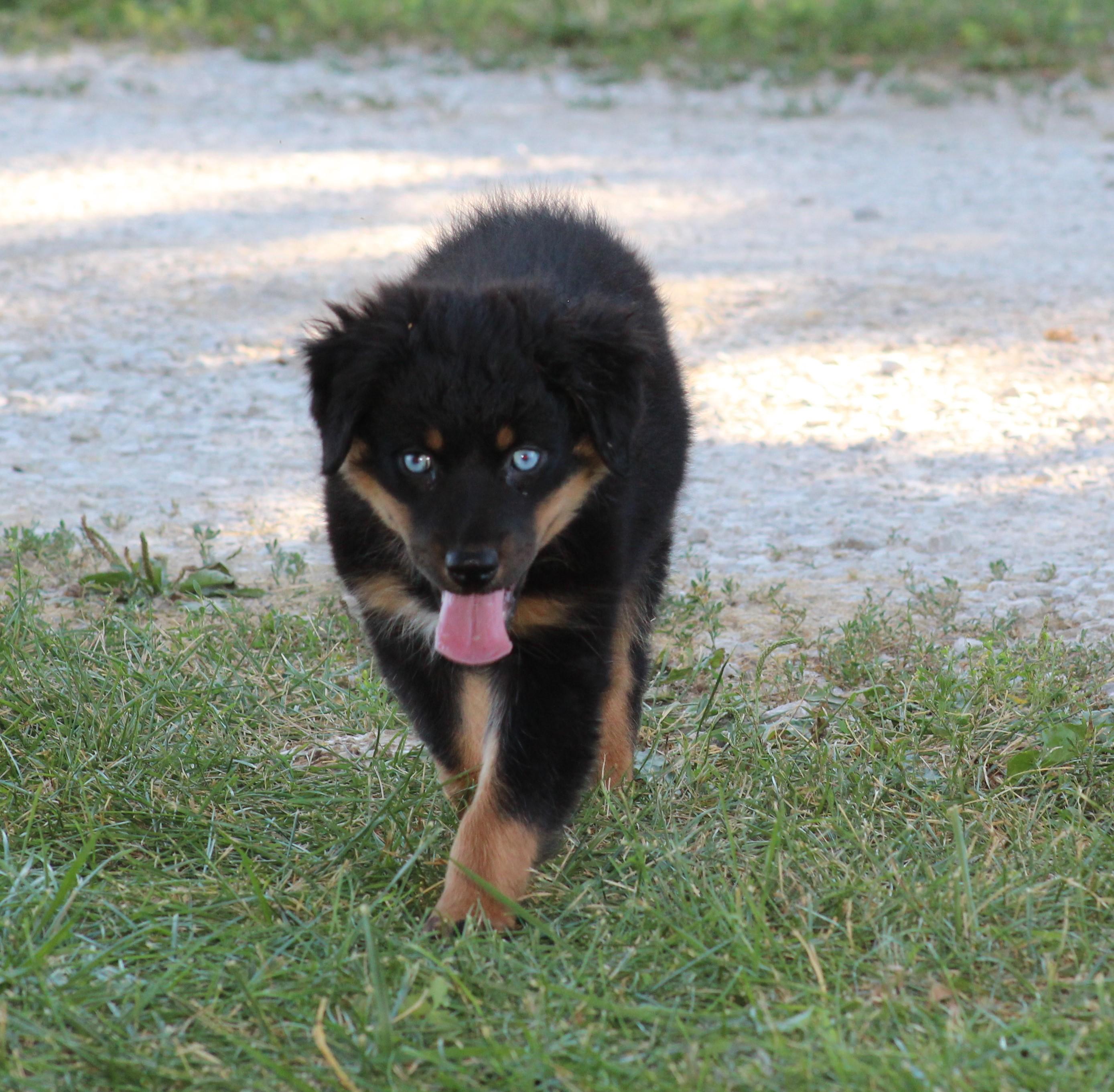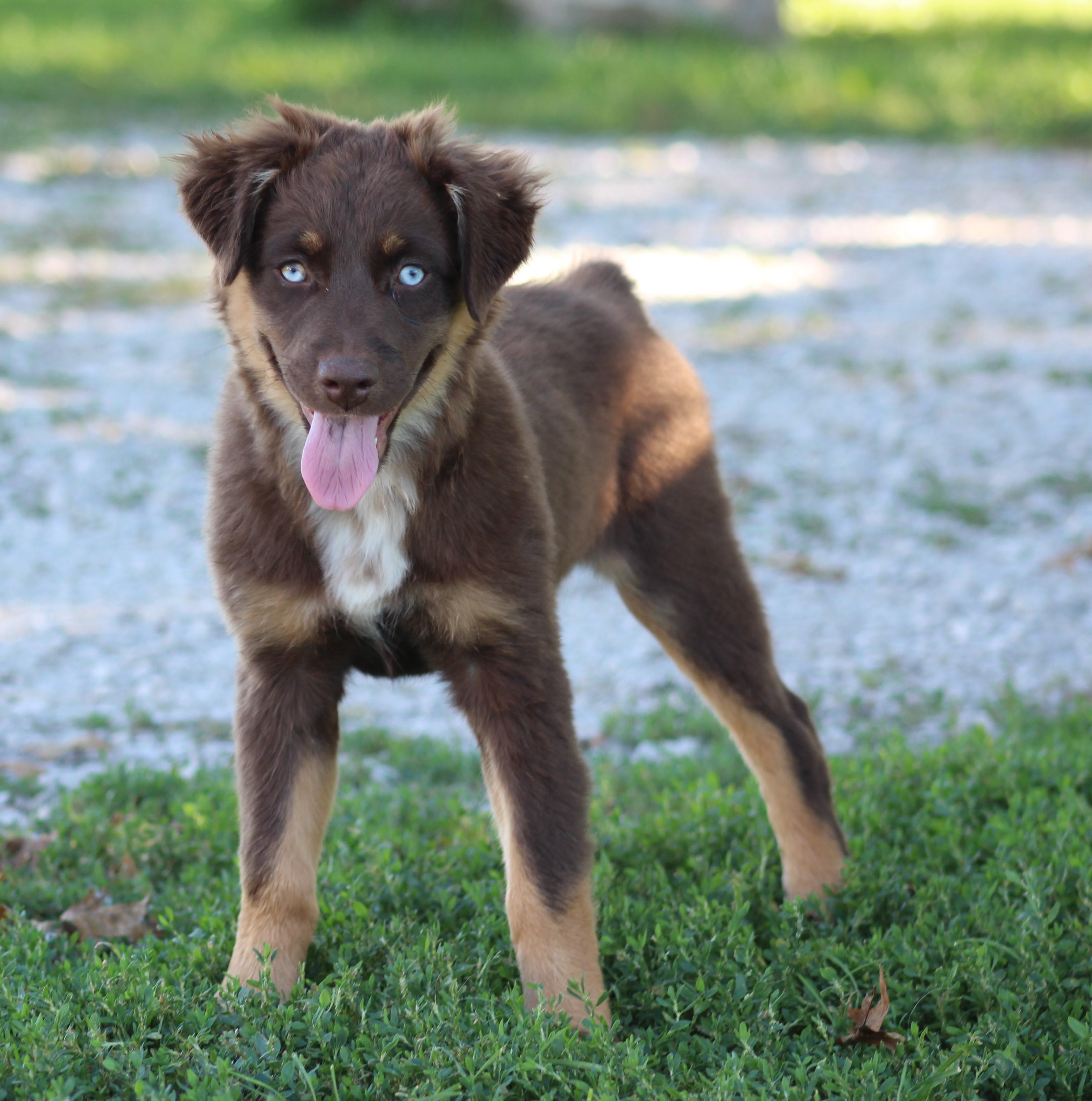 Our puppies include black, red merle, blue merle, and red. Colors will vary depending on the parent dogs.
