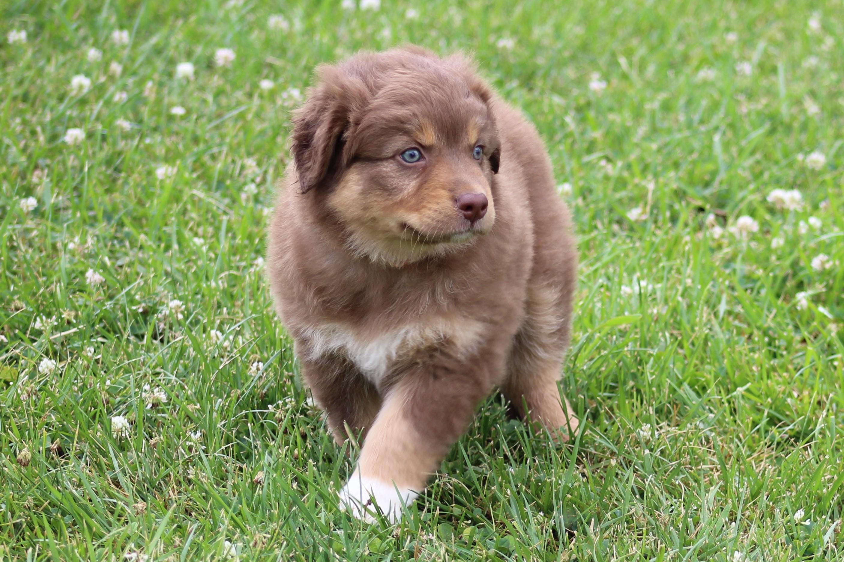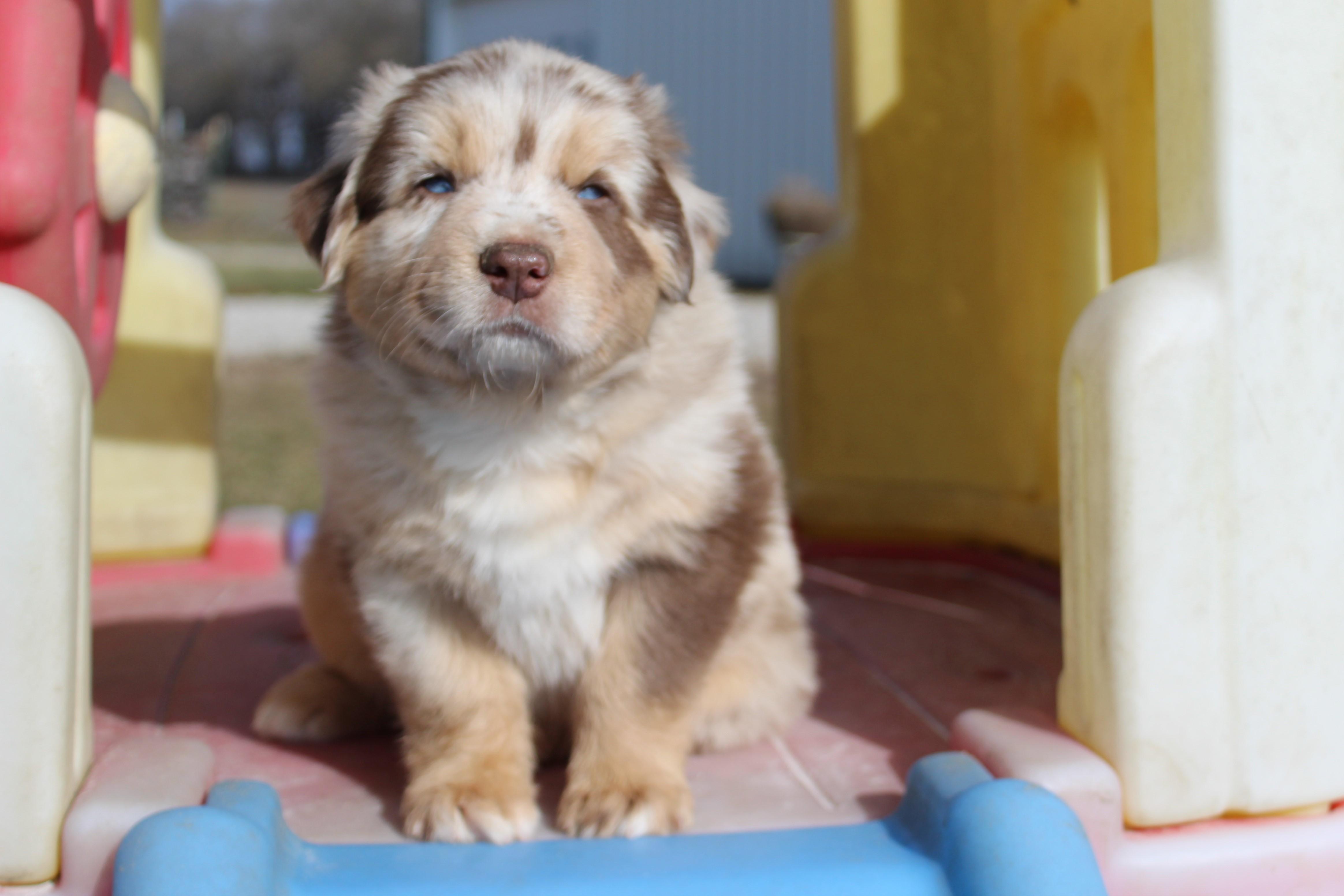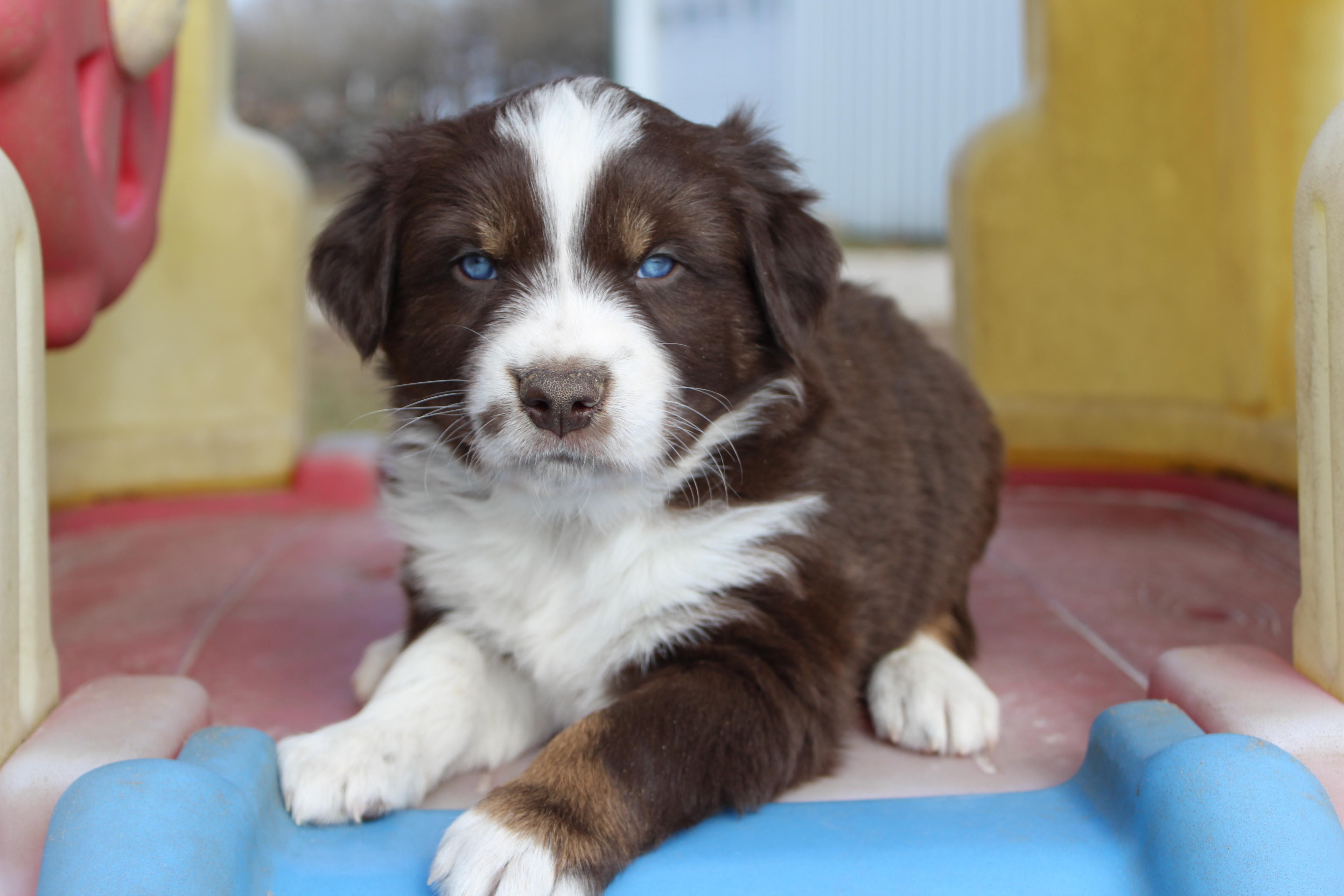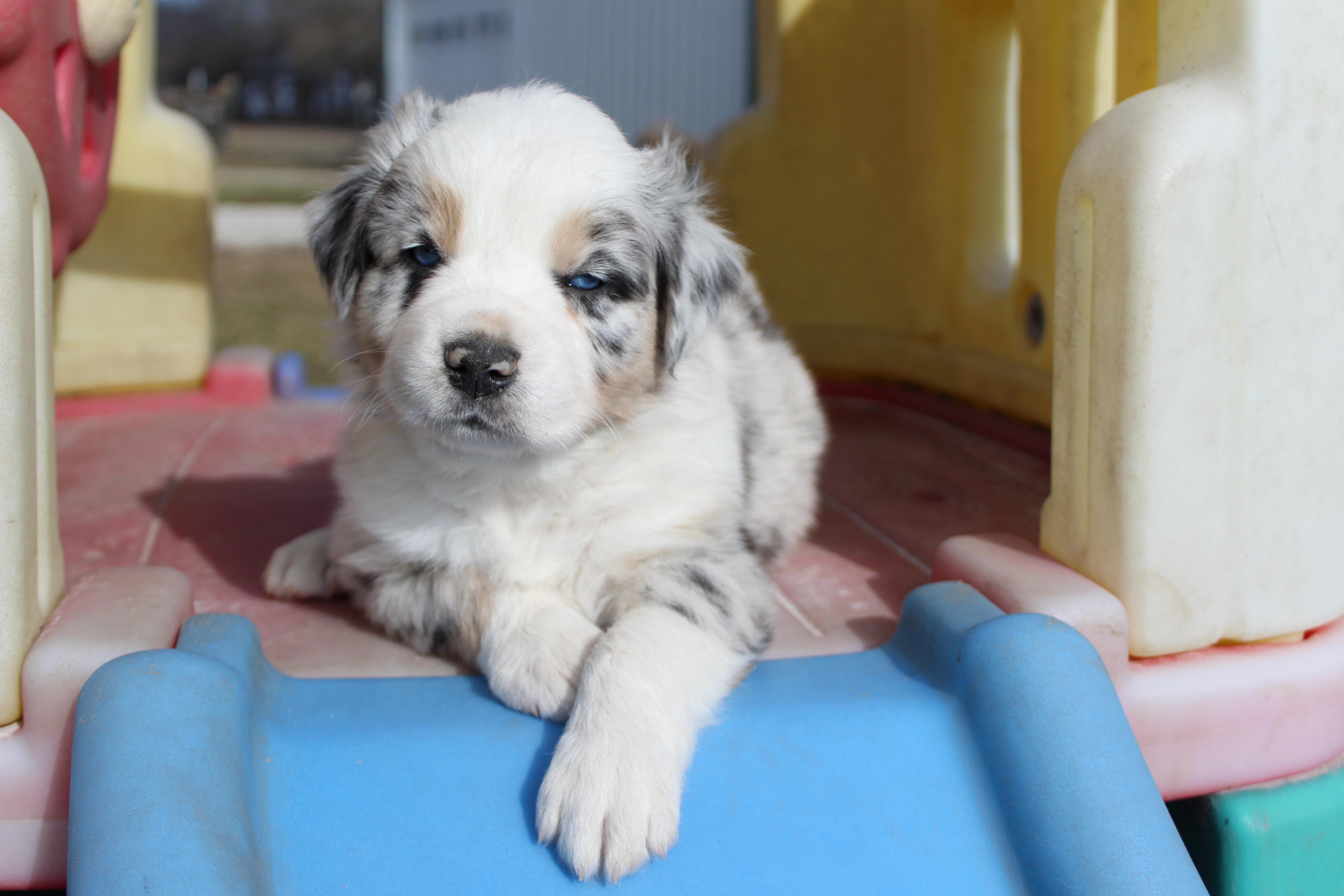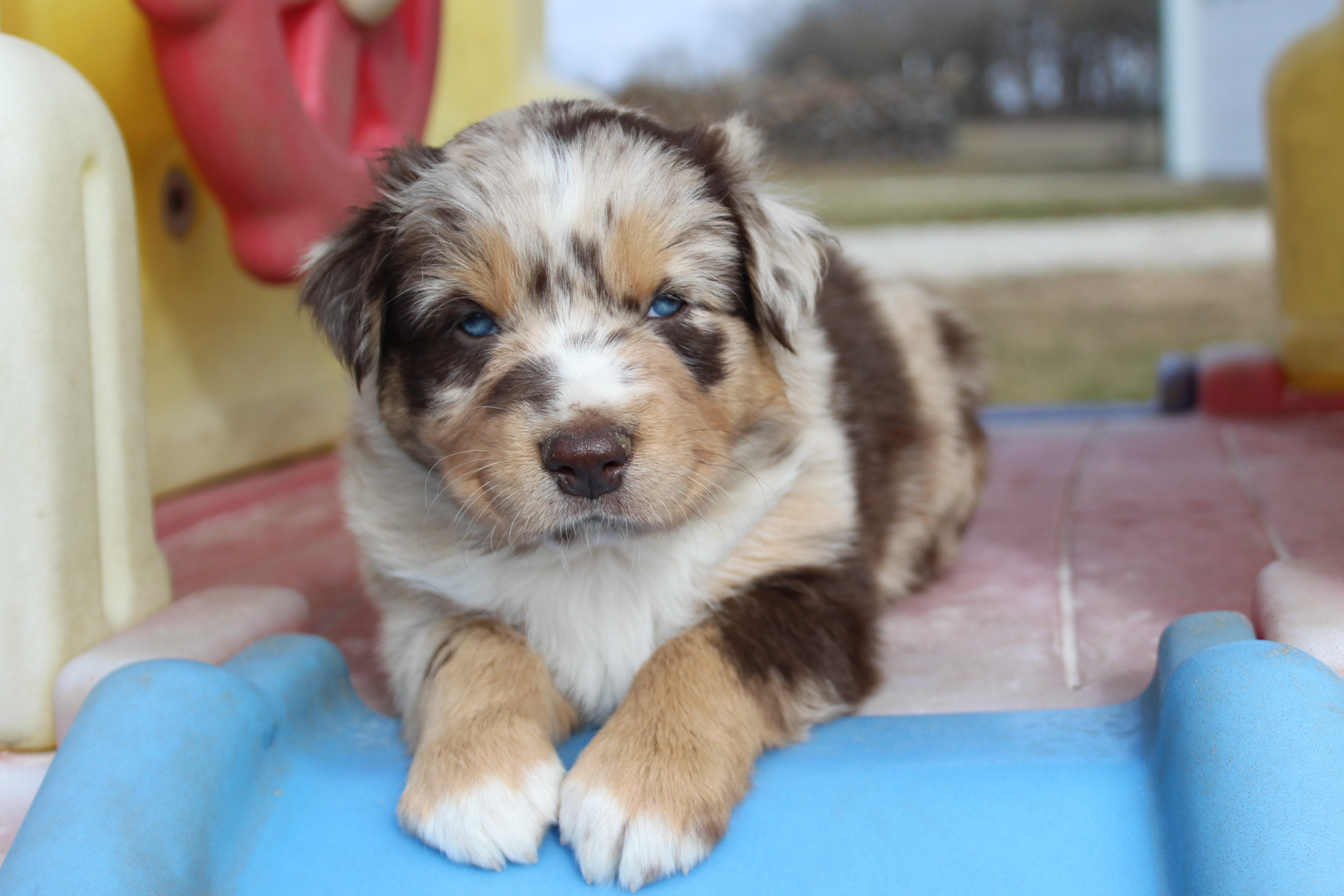 Our puppies include black, red merle, blue merle, and red. Colors will vary depending on the parent dogs.
