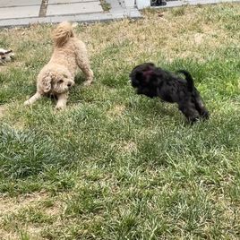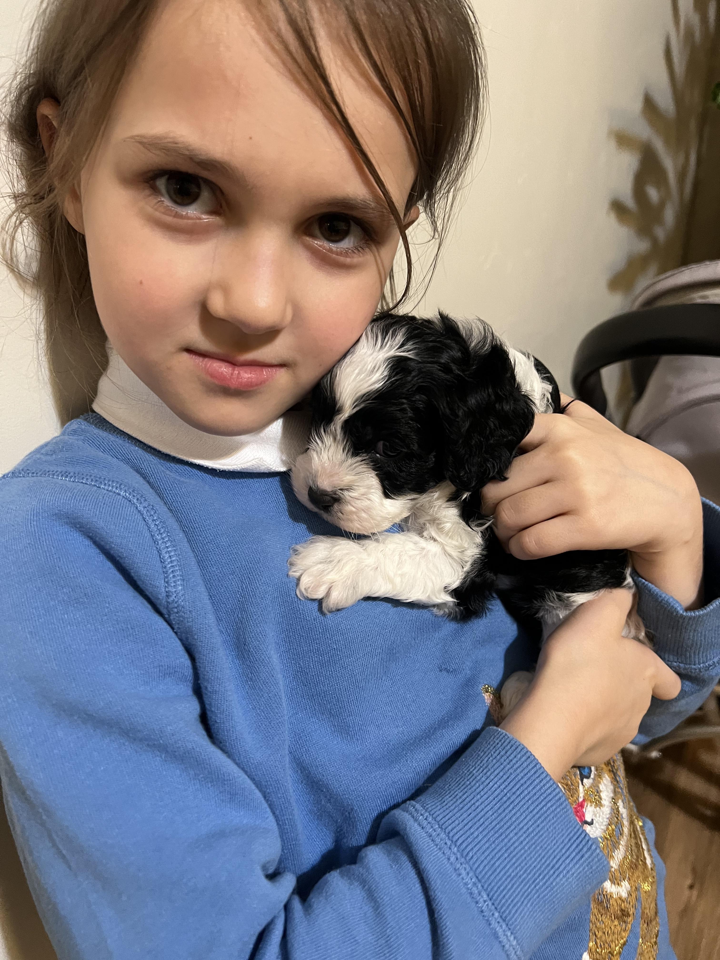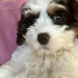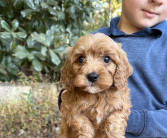 Absolutely love our little Cavapoo. She’s sweet and playful. She loves our children and plays for hours with our other dog. She falls asleep on her back in your arms, melting your heart. She’s also very healthy so we hope to have a long time with her.