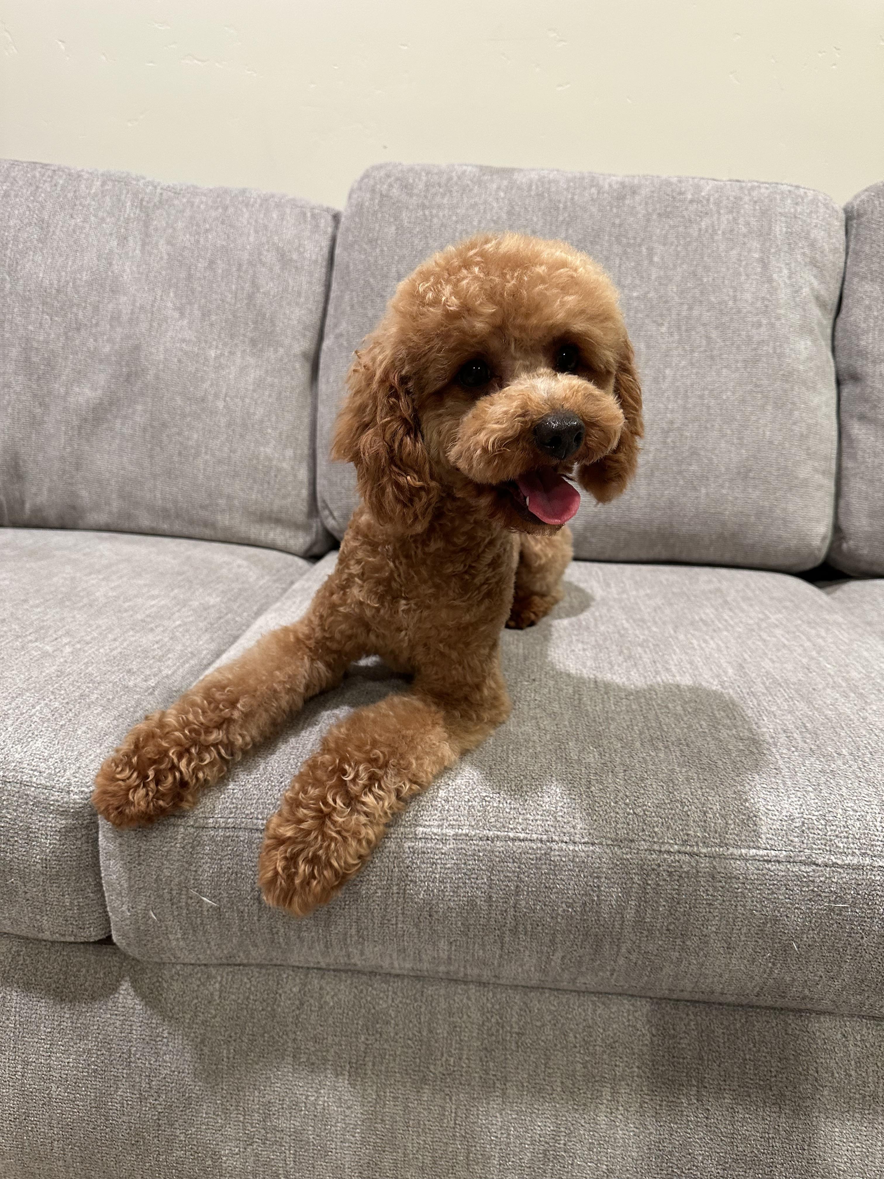Martin is the most beautiful toy poodle. He is 9lbs and has an amazing deep red coat. He is sweet and gentle. He loves kids and enjoys outdoor adventures