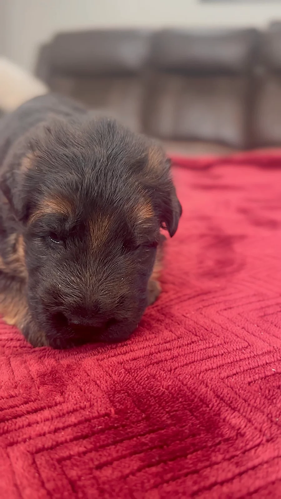 Our puppies include black and tan and black and red. Colors will vary depending on the parent dogs.