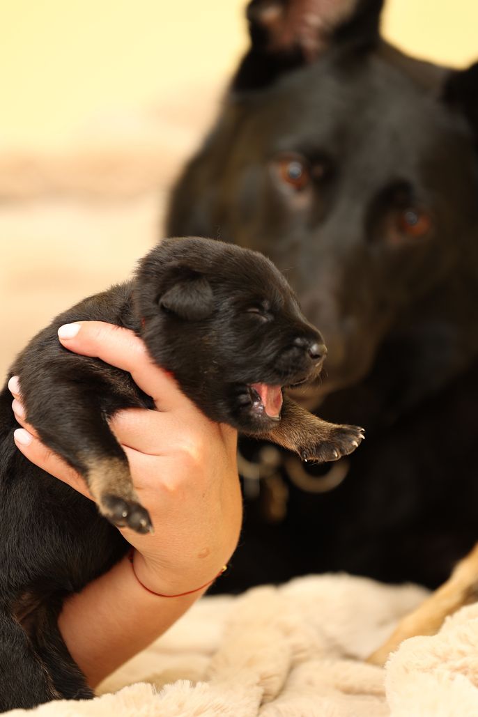 Here is the background of the parents of this litter: My female O'lani vom der Kolonie is 4 years old. I imported her at 10 weeks old from Germany. I had done obsessive research before choosing her and that paid off huge. Her dad Hercules is a globally known male in Germany but from Czech lines. He is the offspring of Spod Lazov who won the FCI World championship in 2013. He is a WUSV Sieger and he is Slovakian champion. Hercules is known for producing healthy hips and elbows, outstanding temperament and spectacular good looks. Here is a video of him: